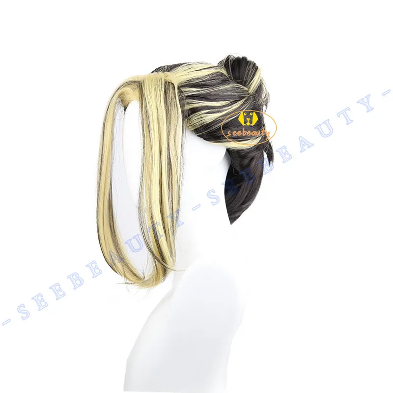 Парик для косплея ханемия казутора из аниме Токио, парик в пучок черного и золотого цвета, волосы из волокна, аксессуары для фестиваля, вечеринки и Косплея