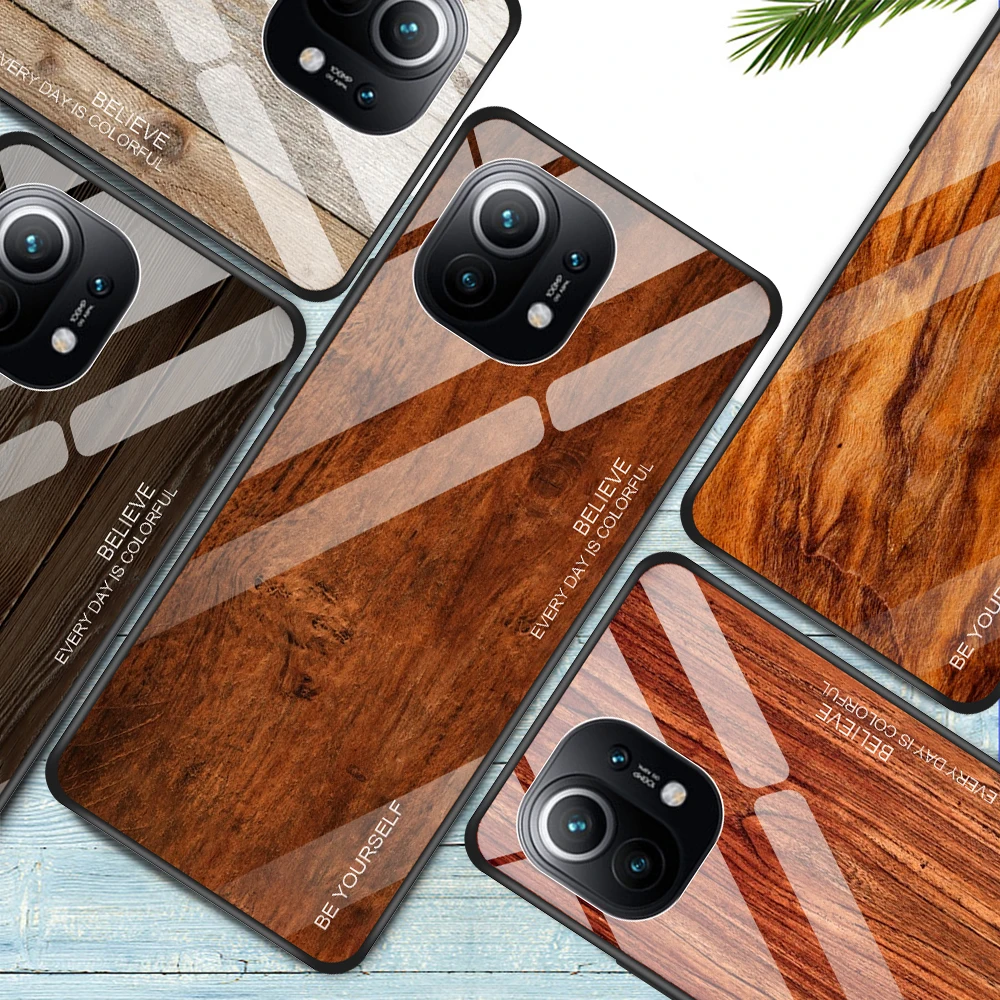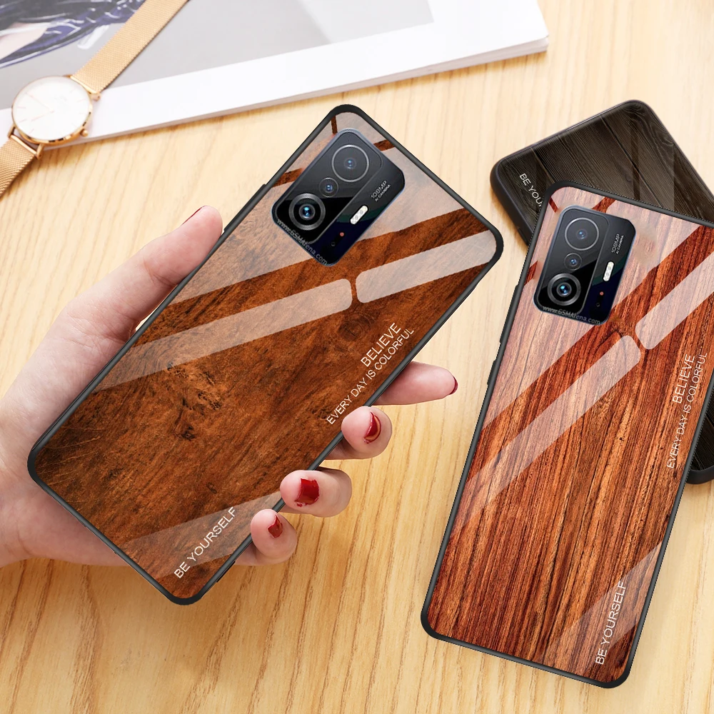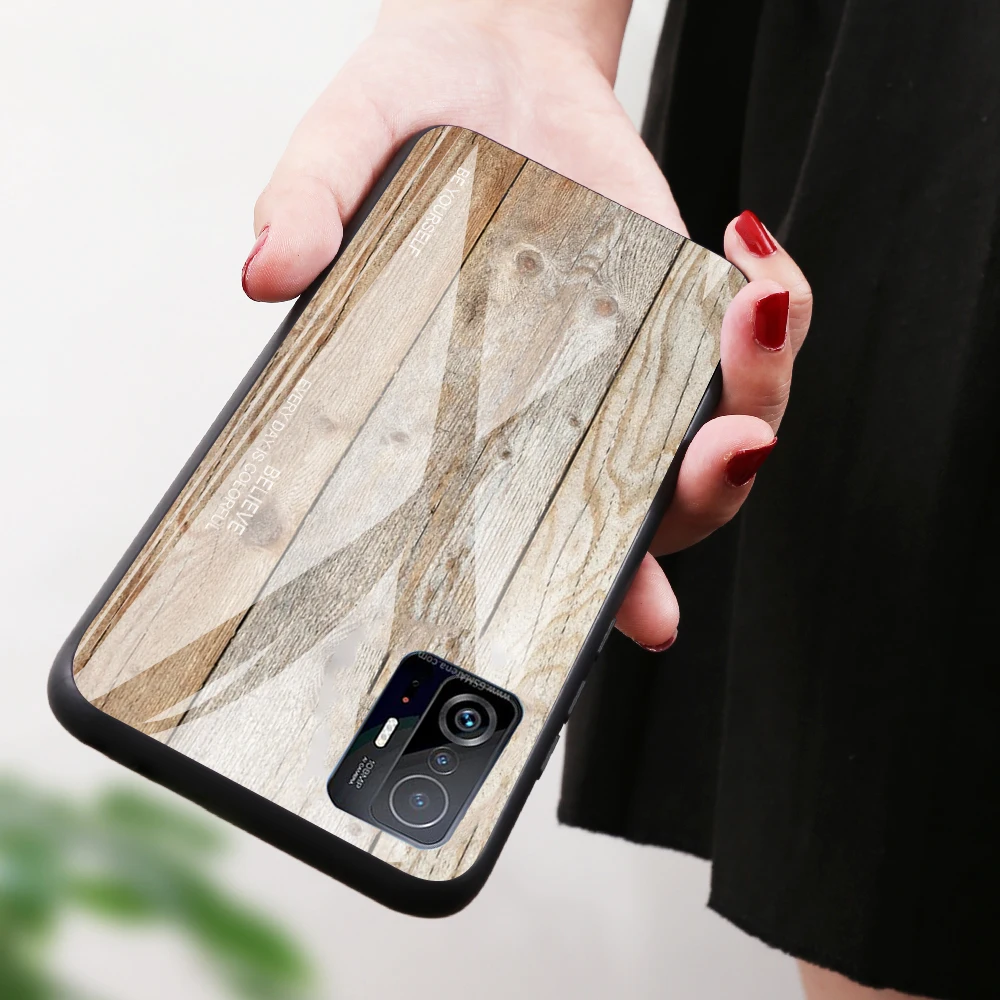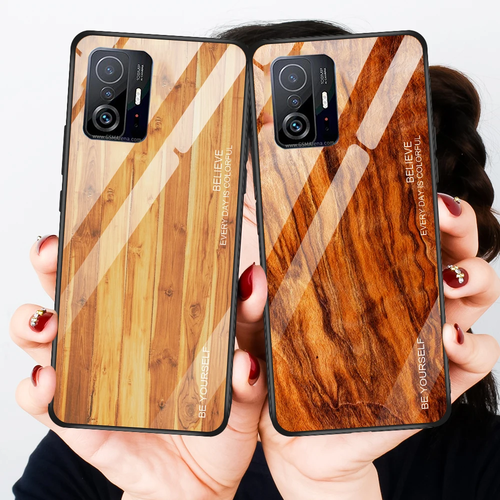 Чехол для Xiaomi 11t Pro с текстурой древесины, чехол из закаленного стекла для Xiaomi Mi 11 Ultra Lite 4G 11t Pro Mi11, противоударный чехол