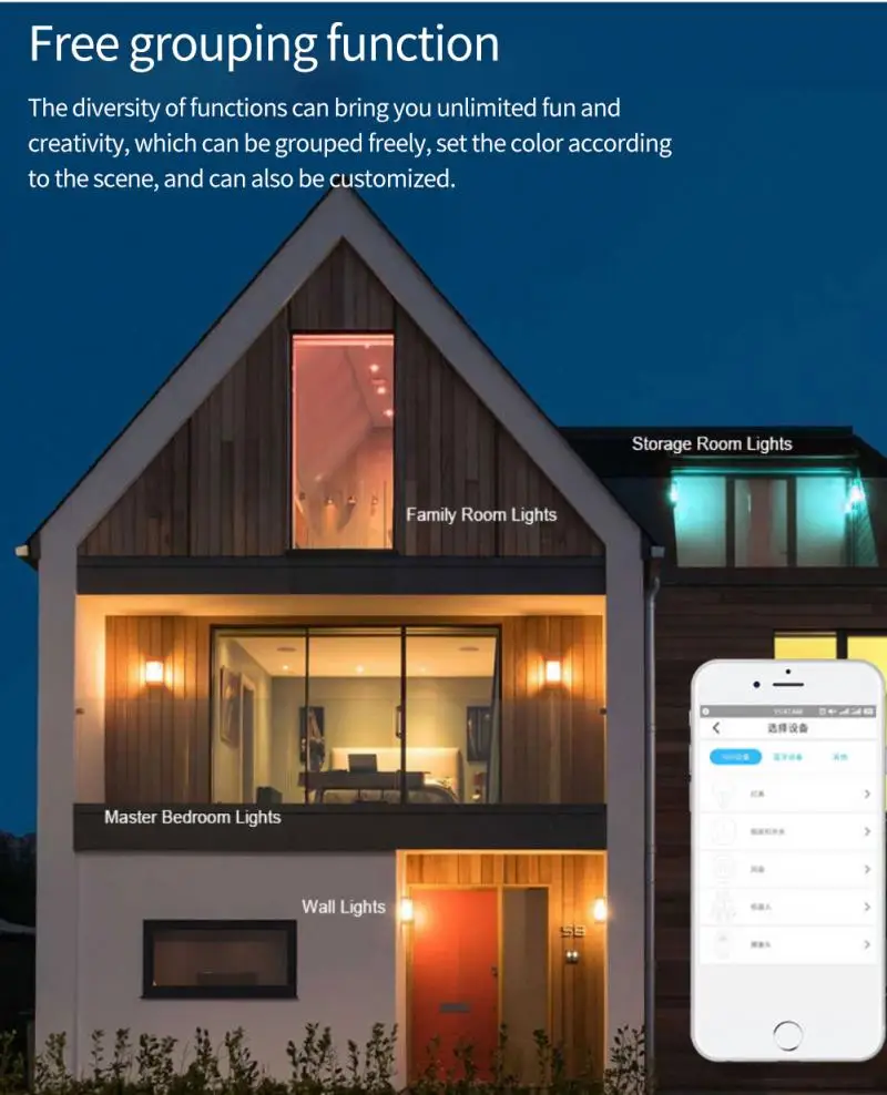 3. Настройте атмосферу: Установите идеальное освещение для любого случая. Установите яркость, отрегулируйте от теплого/холодного белого (2700K ~ 6500K) до нескольких цветов RGB. E. g. Включите светодиодный смарт-лампочку, прежде чем прибыть домой, приглушите смарт-лампы, чтобы иметь вечерние лампы с друзьями.