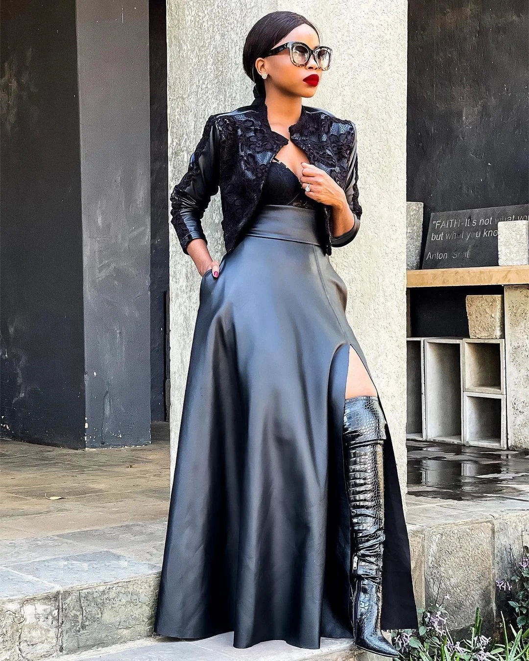 Женская длинная юбка из ПУ кожи, черная однотонная Асимметричная юбка миди из искусственной кожи с разрезом сзади и молнией сбоку, уличная одежда