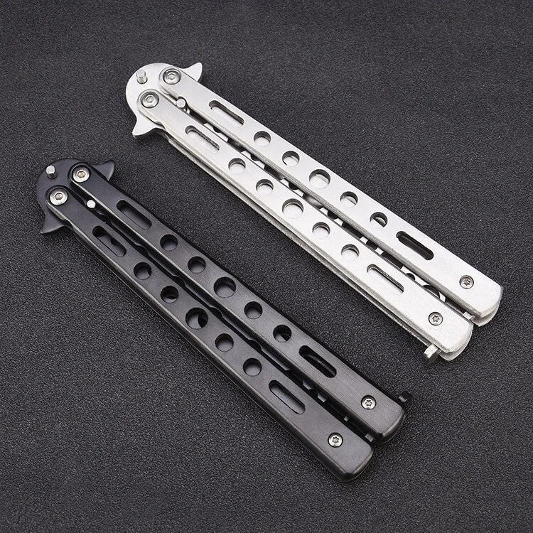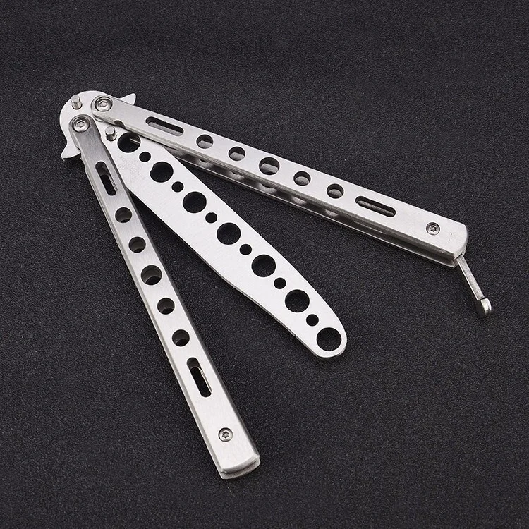 Особенности :<; br/> Тип: нож-бабочка <;br/> Материал: нержавеющая сталь <;br/> Полная длина: 22,5 см <;br/> Длина лезвия: 9,5 см <;br/> Длина ручки: 12,2 см <;br/> Ширина лезвия: 1,7 см <;br/> хвостовик ручки: нержавеющая сталь для конических фрез <;br/> Цвет: черный, зеленый, розовый серебряный <;br/>100% абсолютно новый и высококачественный <;br/> он не острый, без обидного лезвия.<;br/> это очень безопасно для использования.<;br/> это только для практики использования, это складной нож, Легко носить и хранить.<;br/> Изготовлен из нержавеющей стали, очень прочный для использования.<;br/> лезвие имеет отверстия, поэтому его нельзя заточить.<;br/> нож-бабочка, вы можете зажимать, вращать, бросать <;br/> Это идеальное складное изделие из нержавеющей стали Тренировка бабочки, вы можете тренироваться, без вреда.<;br/> хороший инструмент для кемпинга, охоты, походов, приключений и домашнего использования, это круто в качестве подарка для ваших друзей ..<;br/><;br/> посылка включает в себя:<;br/>1 x Складная игра с выцветанием бабочек Ножи
