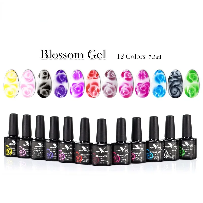 Всего 12 цветов, как выбрать цвета, обратите внимание: этот гель нужно чистить белый/прозрачный цвет основы перед использованием цветущего геля!