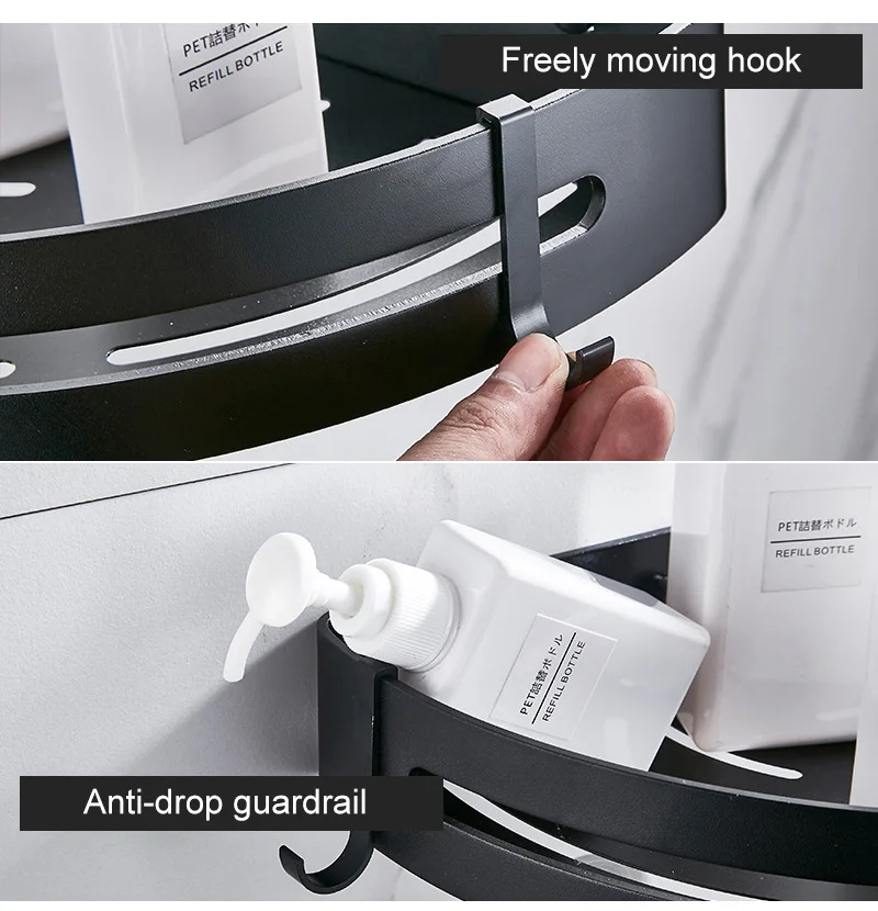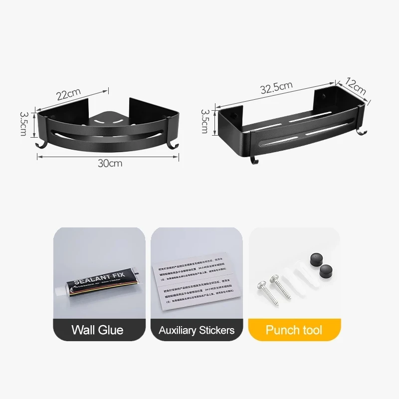 1. Эта полка изготовлена из качественного алюминиевого сплава с устойчивой к коррозии поверхностью. Подходит для влажной среды, такой как ванная комната (даже в душе) и кухня.