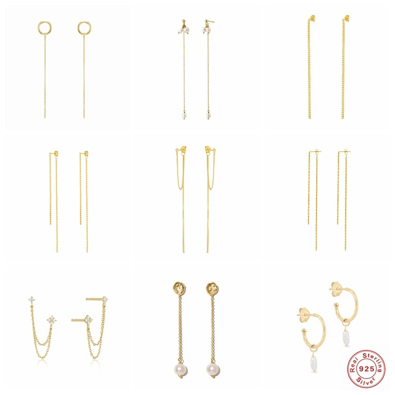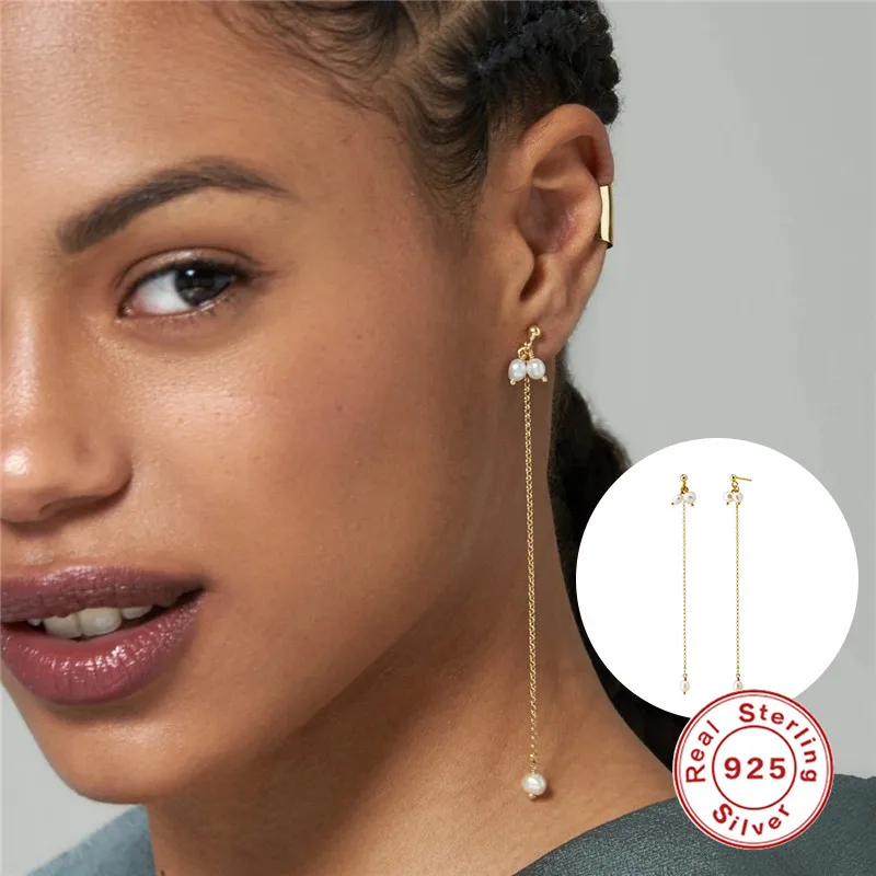 Минималистский 925 стерлингового серебра серьги-гвоздики для женщин в Корейском стиле INS Длинная кисточка, цепочка Свадебные серьги ювелирные украшения аксессуары