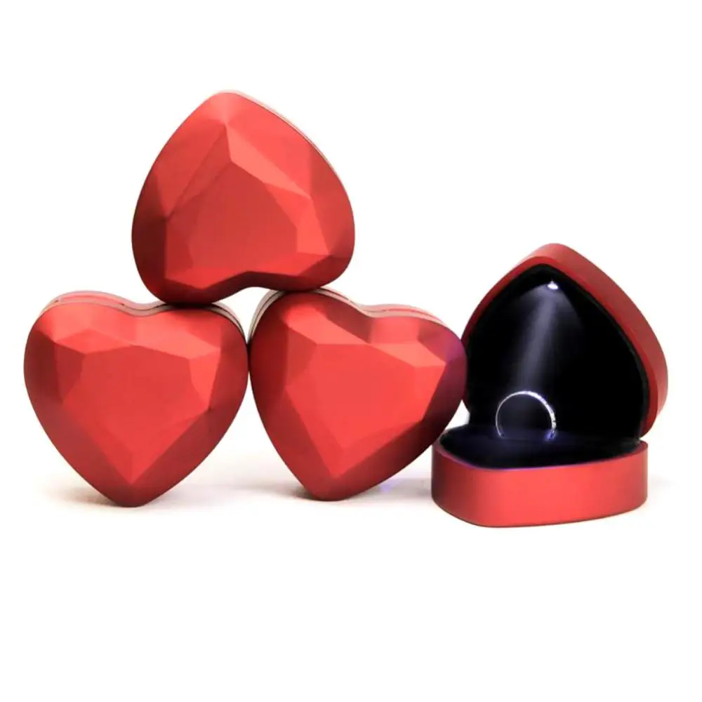 Кольцо для хранения ювелирных изделий в форме сердца, светодиодный светильник, держатель, витрина для свадебных церемоний, бархатный бокс с d-образным кольцом в форме сердца