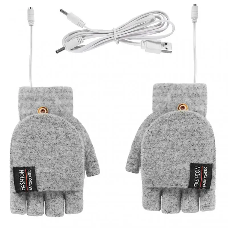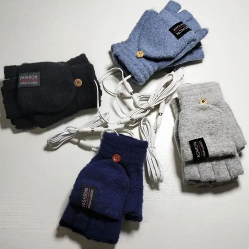 2021 перчатки с подогревом через USB, двусторонние перчатки с подогревом через USB, зимние теплые вязаные перчатки с открытыми пальцами, теплое Велосипедное оборудование