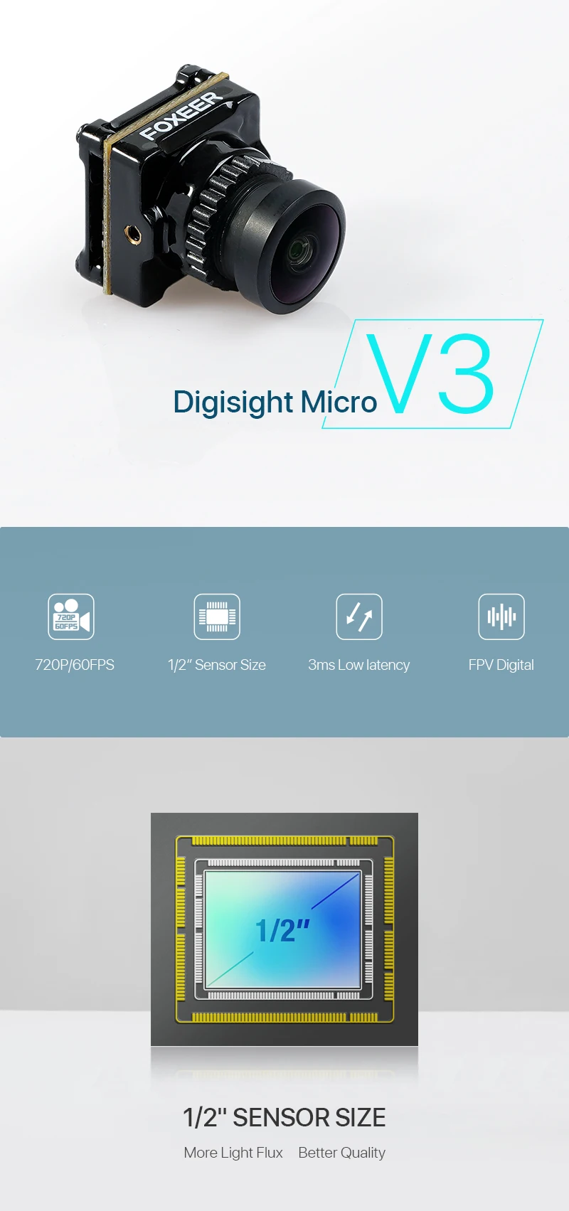 Foxeer Digisight V3 Micro FPV камера 720P 60fps 3ms 1000TVL аналого...