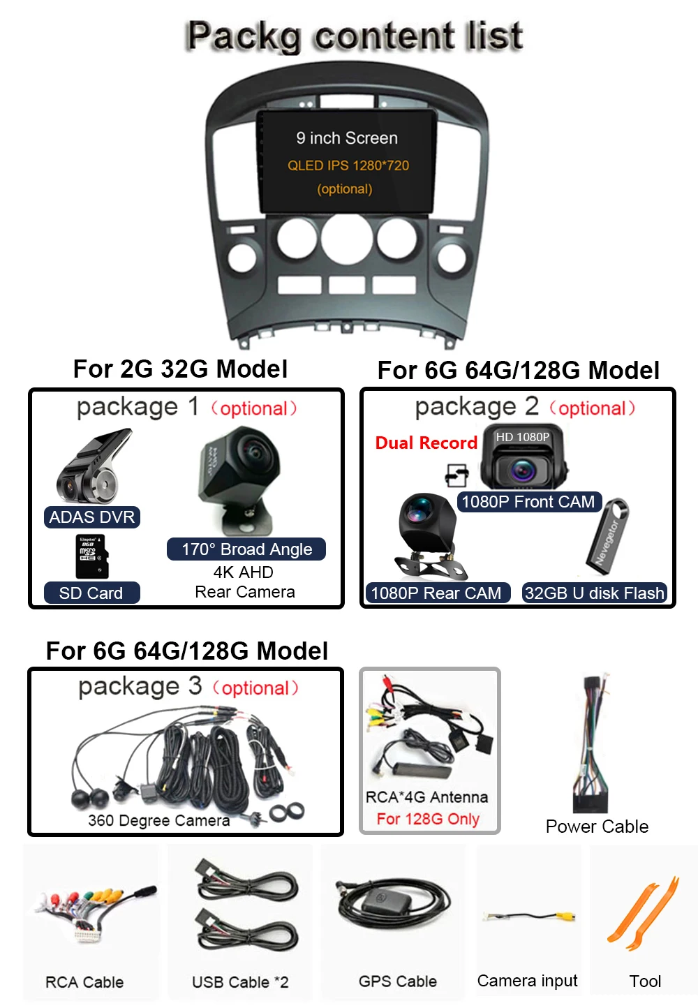 RAM+ROM:2G+32G / 6G+64G/ 6G/8G+128G (Optional)