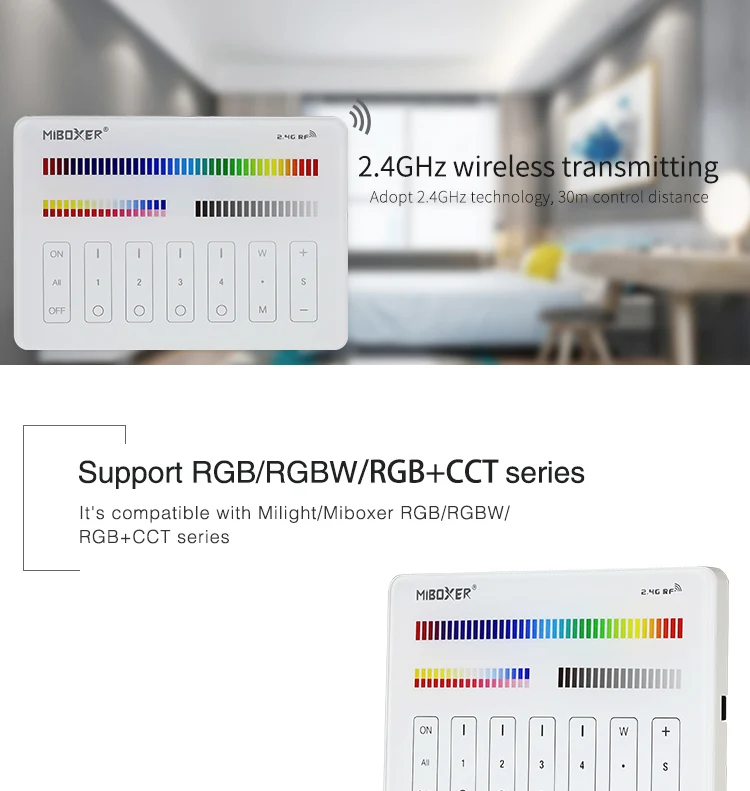 1. 8 зон smart панель пульта дистанционного управления выполнена из элегантной сталинит с низким содержанием панели и высокоточной трогательный IC, более стабильна и чувствительный. И примите во всем мире б/у 2,4 ГГц частоты, метод управления GFSK, с особенностями низкого потребеление энергии, междугородной trans mi tting, сильная защита от помех и быстро comunication, смарт-светильник Mi-светильник может управлять указанным цветом, цветовой температурой, насыщенностью и изменением яркости. Работает на всех наших светодиодных Лампах Mi-светильник, контроллеров и панельных контроллеров и т. д.