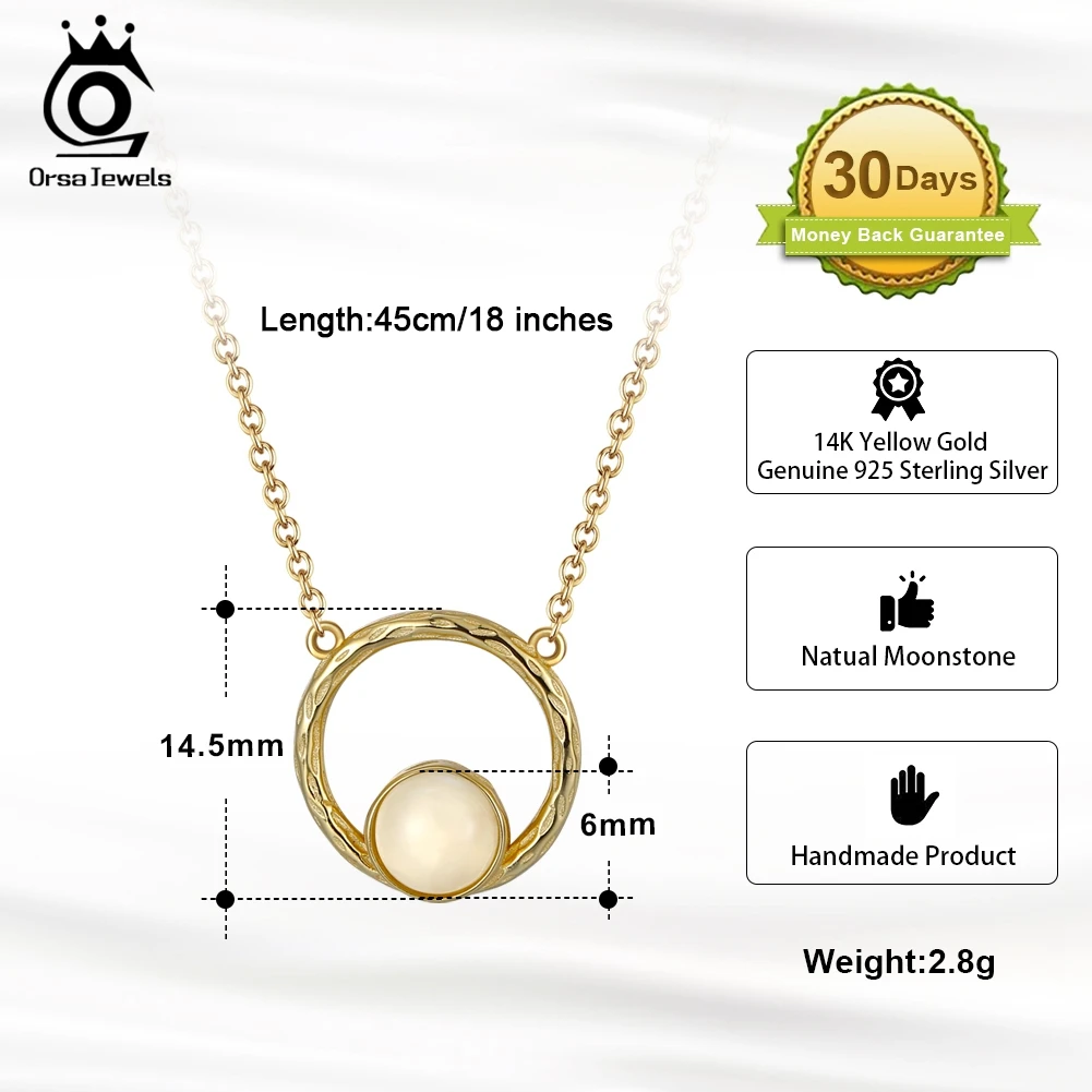ORSA JEWELS, Подлинная ручная работа, серебро 925 пробы, натуральный драгоценный камень, натуральный лунный камень, ожерелье, круглая подвеска, Женские Ювелирные изделия GMN10