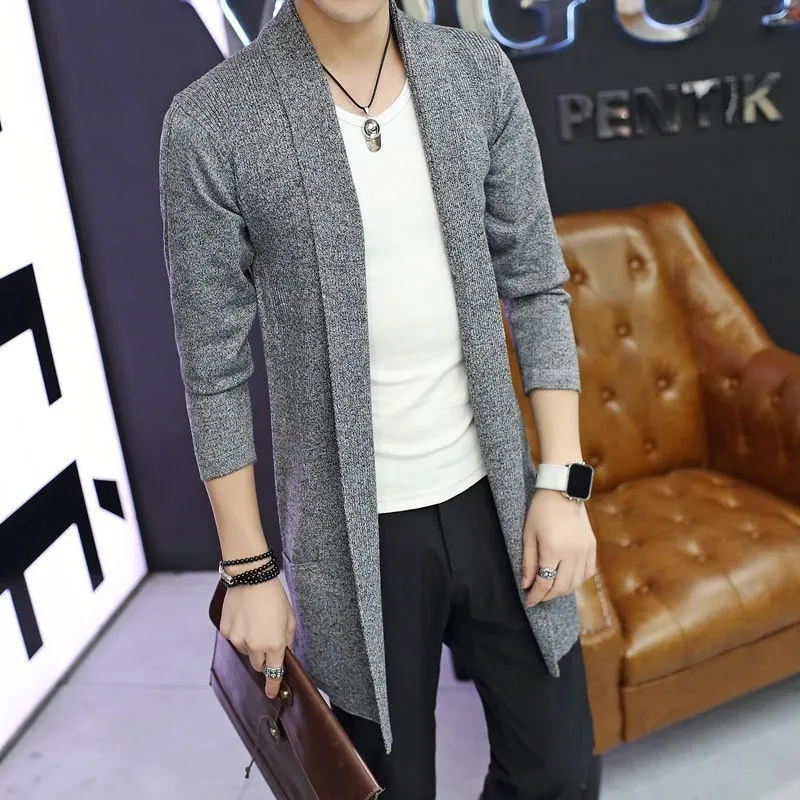 Новинка 2022, модный Мужской Повседневный свитер, пальто, весна-осень, мужской облегающий длинный однотонный вязаный свитер, пальто, мужской свитер, кардиган, пальто