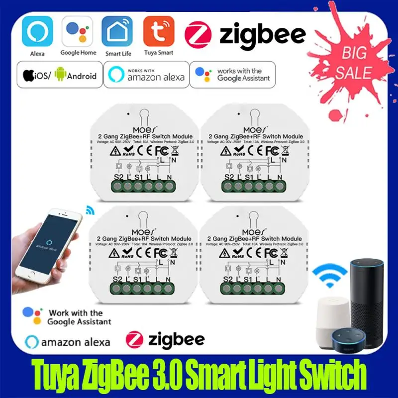 4. Учитывая состояние нестабильной сети или сети, коммутатор ZigBee 3,0 действительно незаменим для соединения с шлюзом ZigBee для формирования домашней локальной сети, больше не беспокойтесь о И слабой сети, легко получить контроль через подключенные устройства до тех пор, пока есть стабильный сигнал ZigBee; Позволяет больше устройств, подключенных через ZigBee, чем протокол WiFi; Smartthings поддерживается для этого модуля переключения ZigBee Специально.