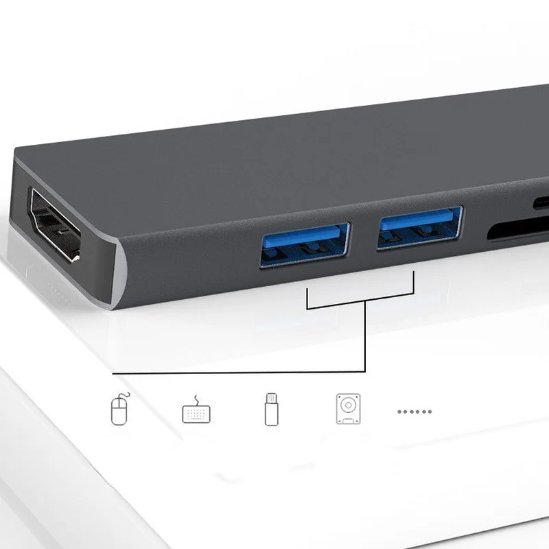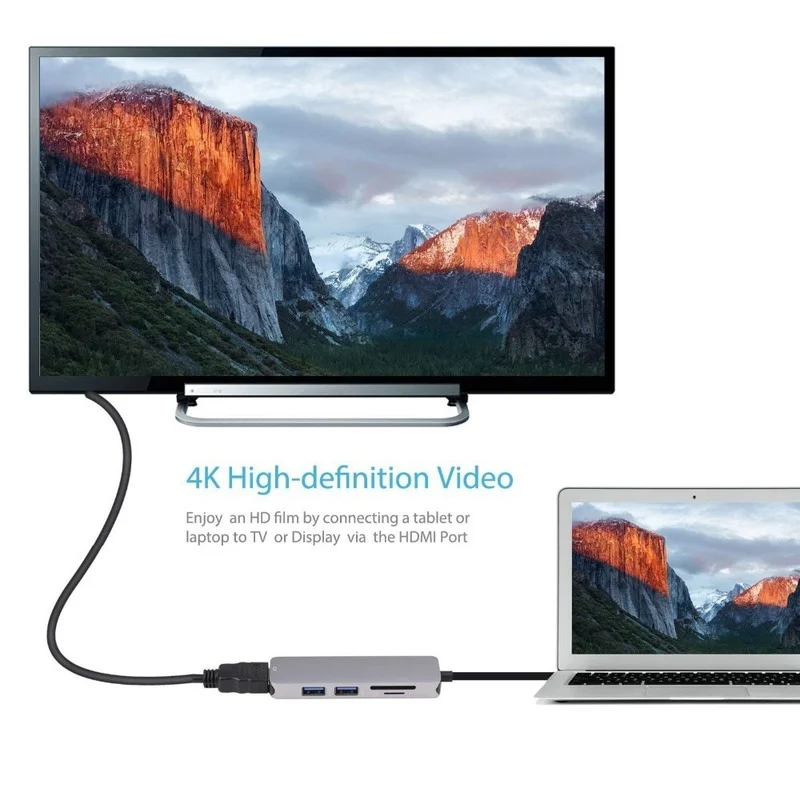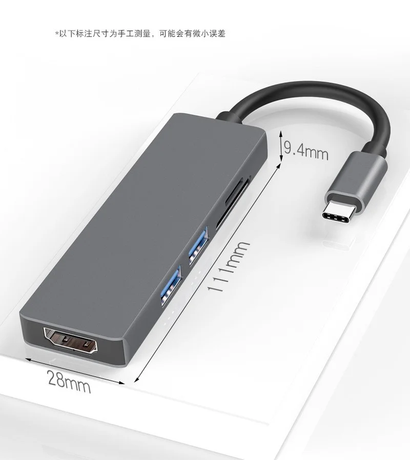USB-C HDMI + TF/SD + 2USB3.0-это Кабель-адаптер для передачи видео, входное устройство имеет протокол интерфейса USB-C для мобильных телефонов, планшетов, ноутбуков и т. д. Выход HDMI поддерживает разрешение видео до 3840X2160P/30 Гц, выходное устройство HD монитор, ЖК-телевизор и т. Д.