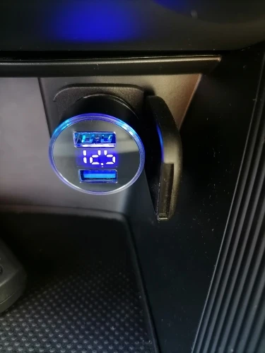 Автомобильное зарядное устройство с двумя USB-портами и вольтметром...