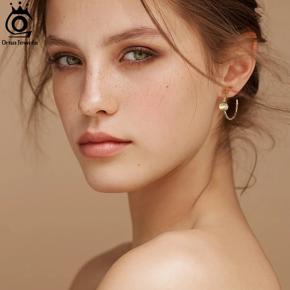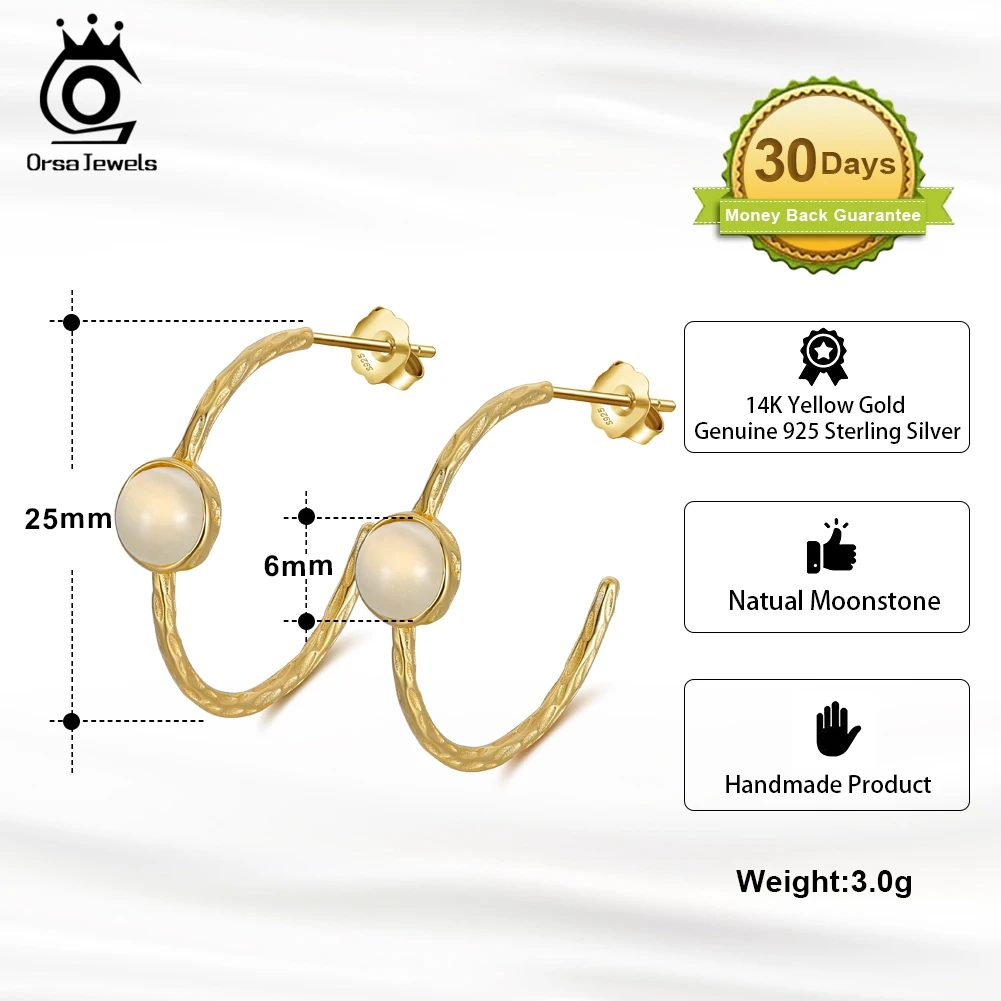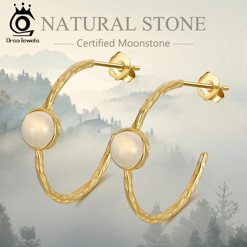 ORSA JEWELS, серьги-кольца ручной работы из стерлингового серебра 925 пробы с натуральным диаметром 6 мм, серьги из лунного камня, ювелирные изделия для женщин и девочек GME10