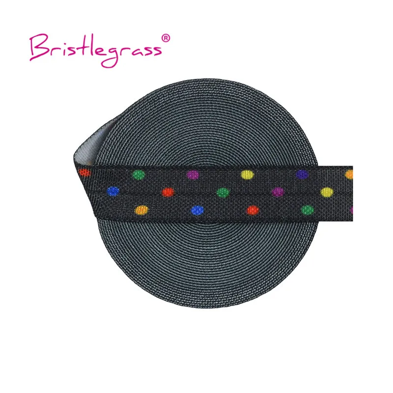 Эластичная лента для волос из спандекса и сатина, радужные в горошек, с рисунком, для волос, с вышивкой, 2, 5, 10, Yard, 5/8 ", 15 мм