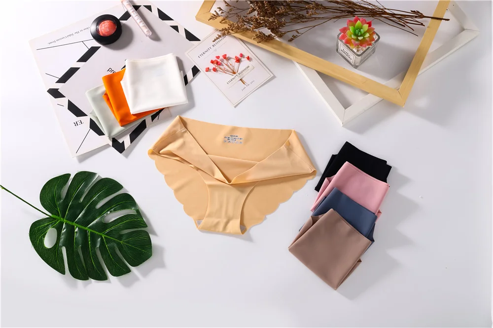 Бесшовные трусики для женщин 4 шт.лот, простые трусики, шелковое же...