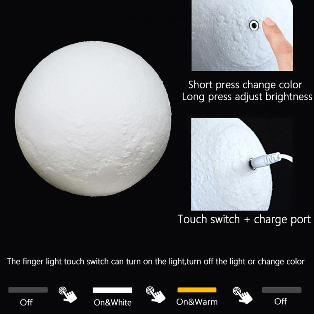 3D печать, USB перезаряжаемая лампа в виде Луны, светодиодный ночник, креативный сенсорный светильник в виде Луны с регулируемой яркостью для спальни, украшение, подарок на день рождения