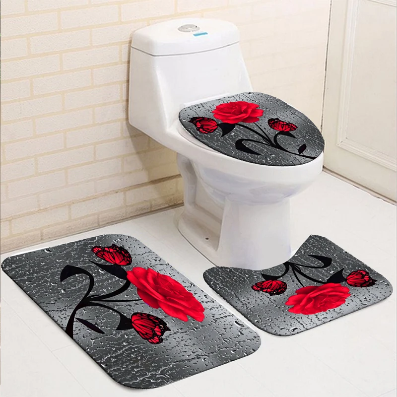 Водонепроницаемая занавеска для душа в ванную комнату, набор нескользящих ковриков для ванной, коврики, чехол на сиденье унитаза, Цветущие розы, домашний декор