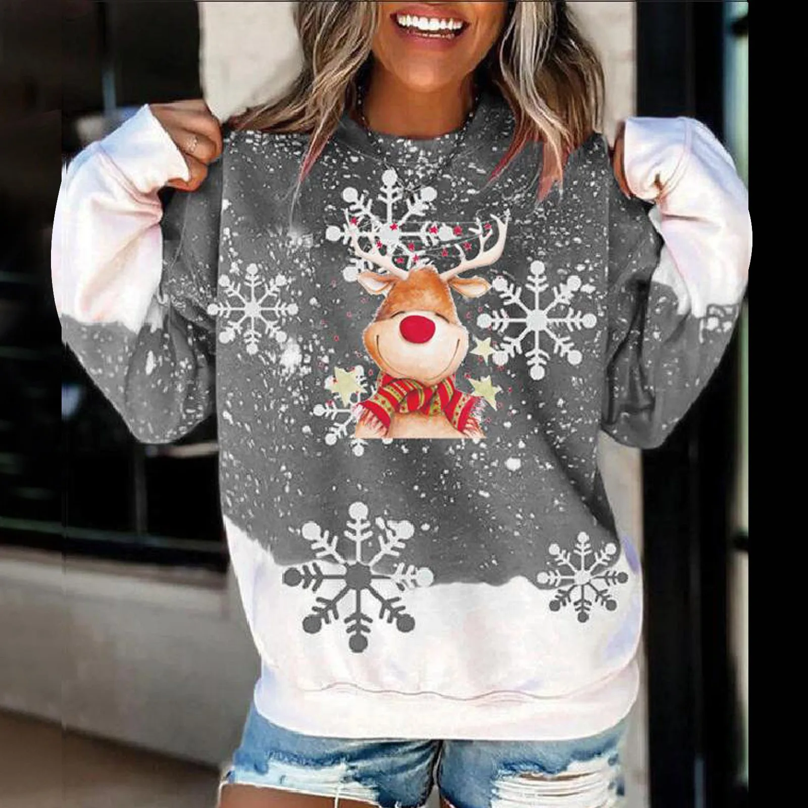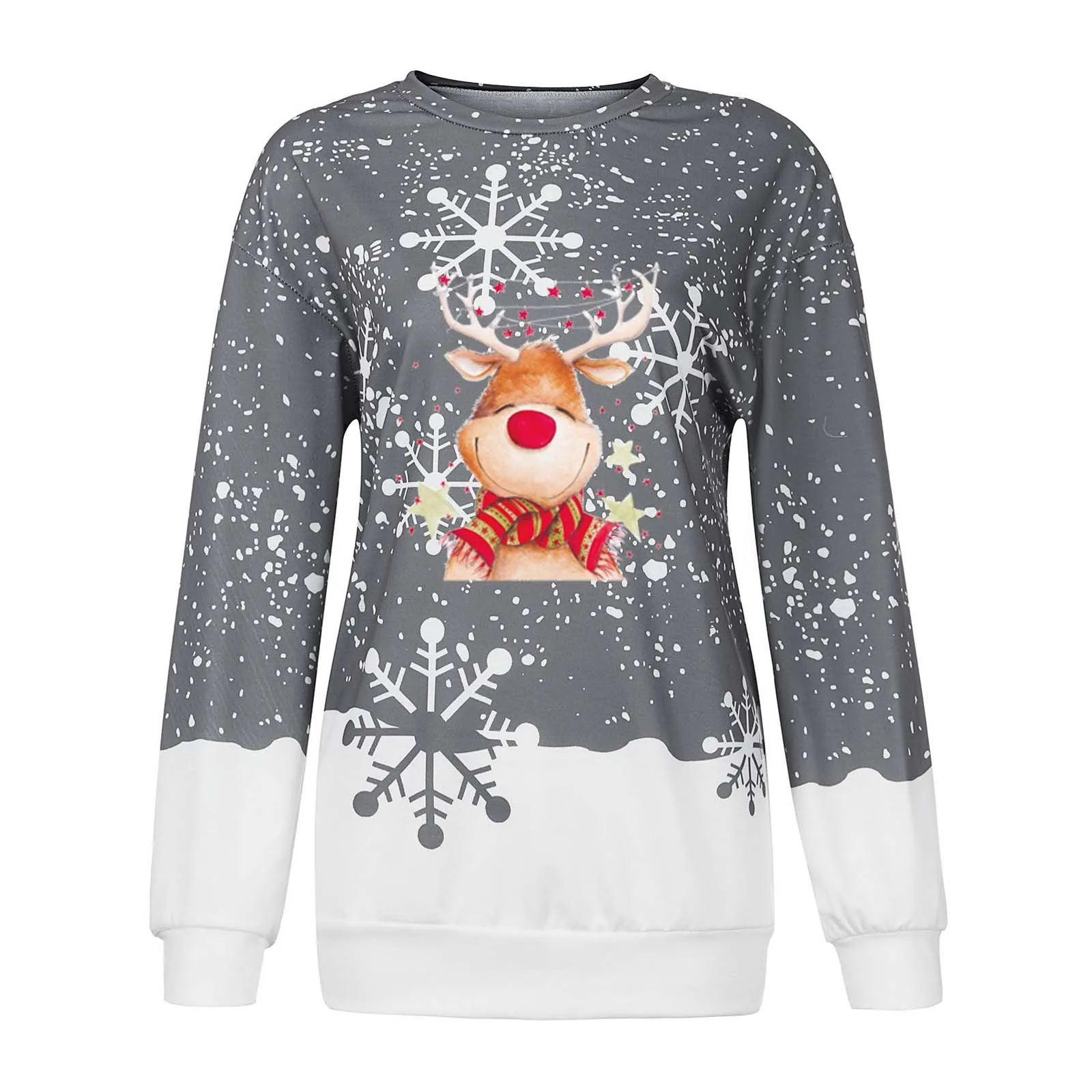 Рождественские женские свитера, зимний Повседневный пуловер с круглым вырезом, Осенний женский джемпер с длинным рукавом и рождественским принтом оленя, Свободный свитшот, Топ
