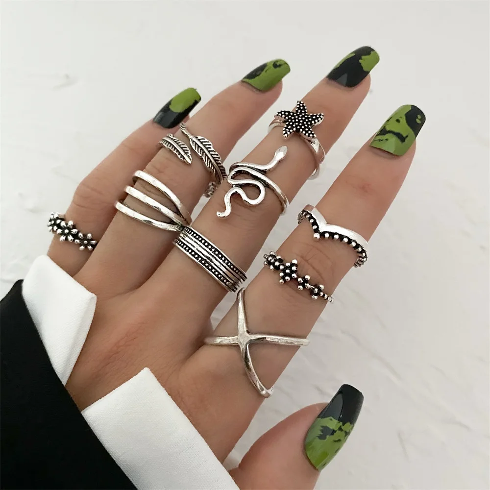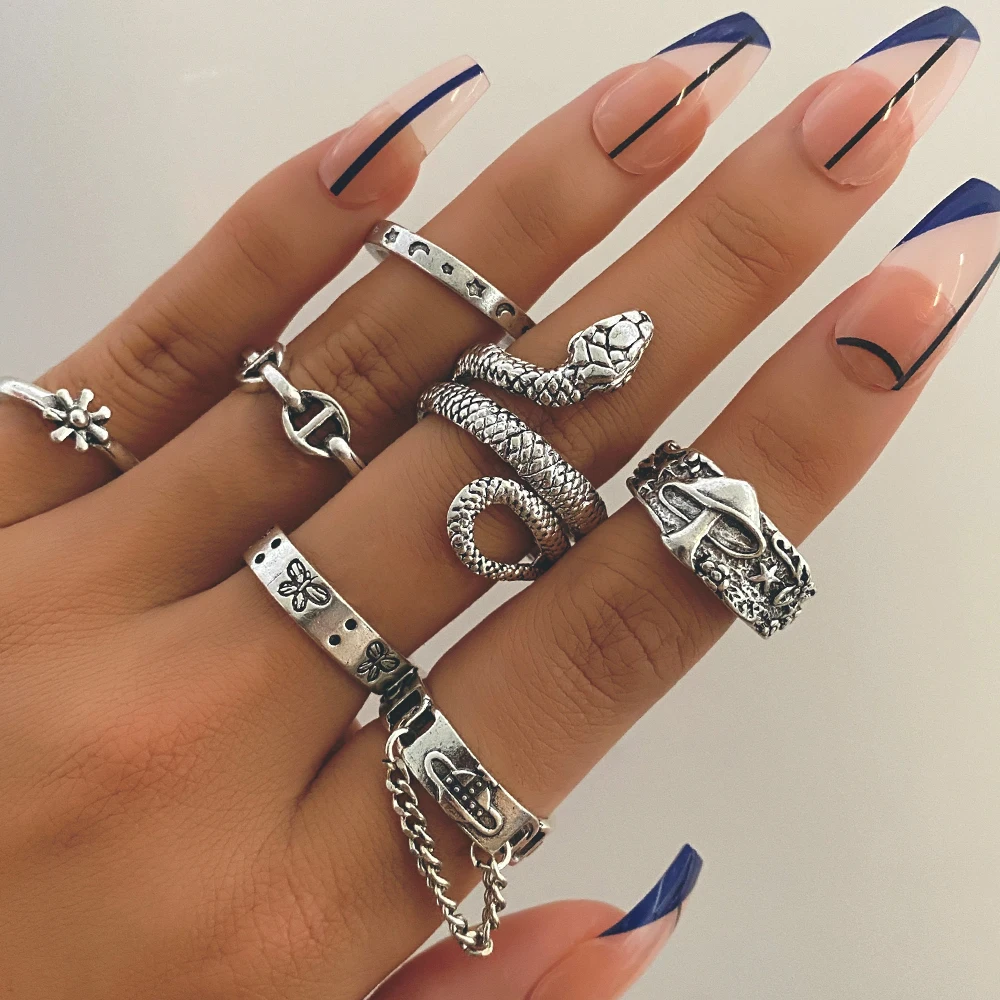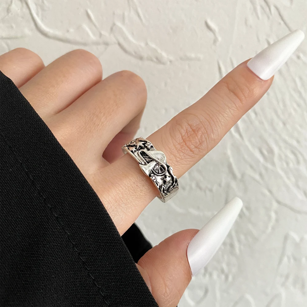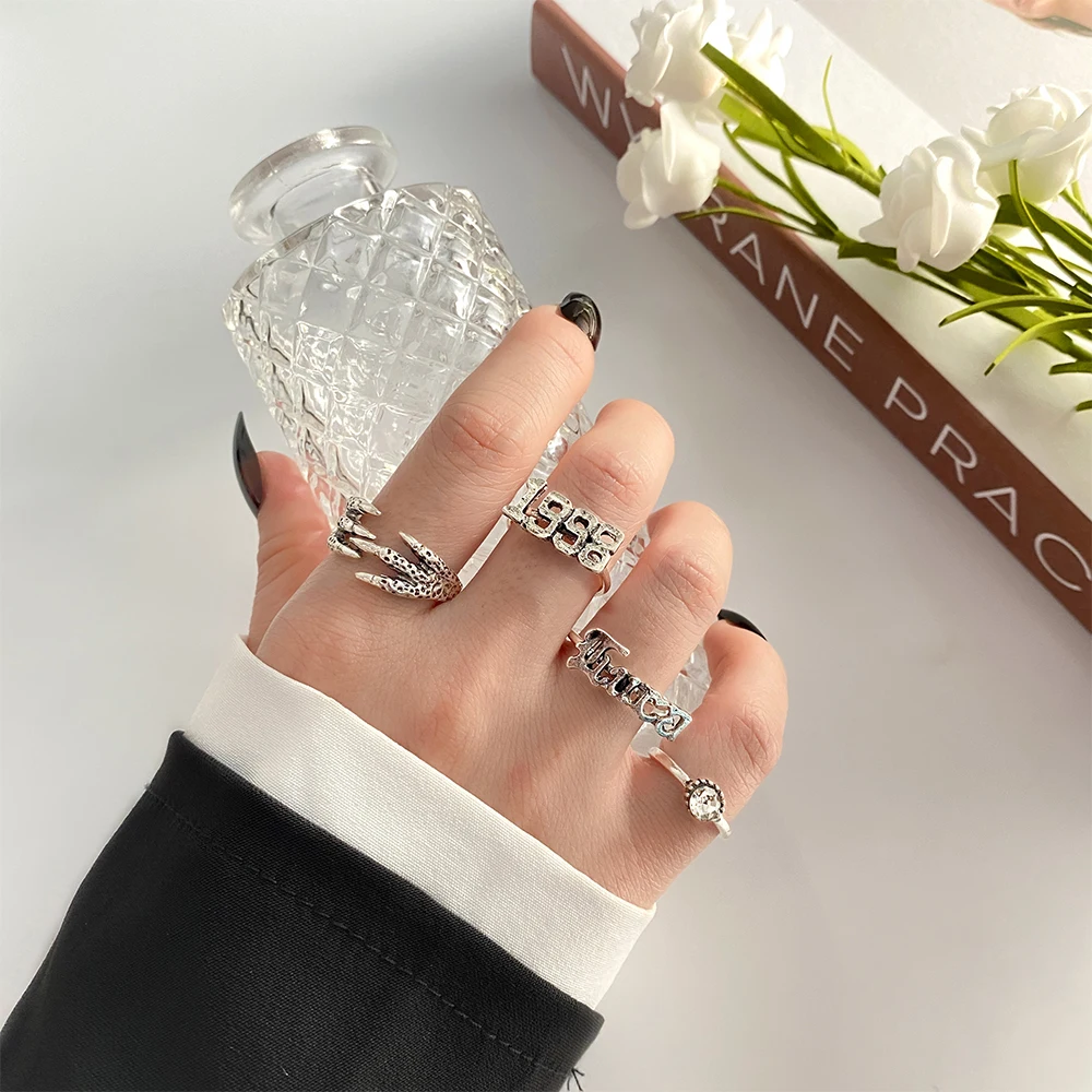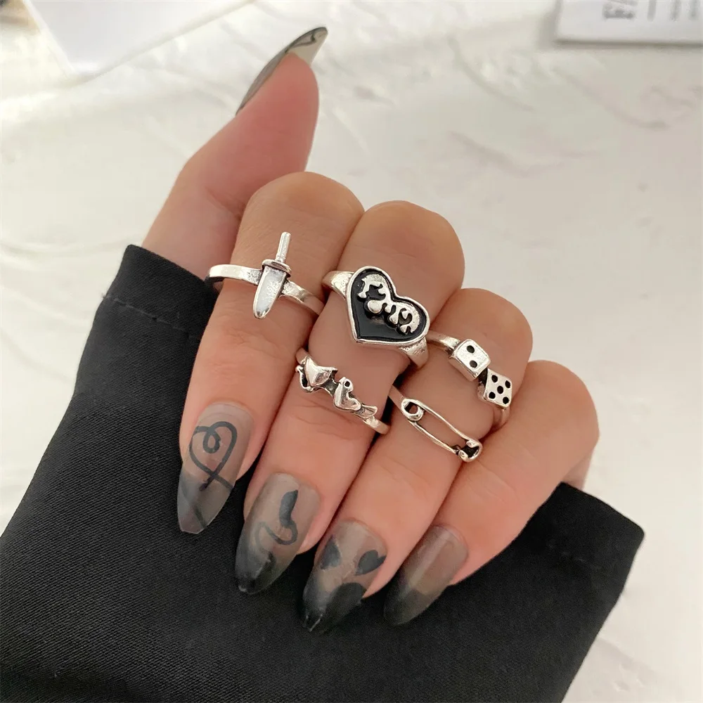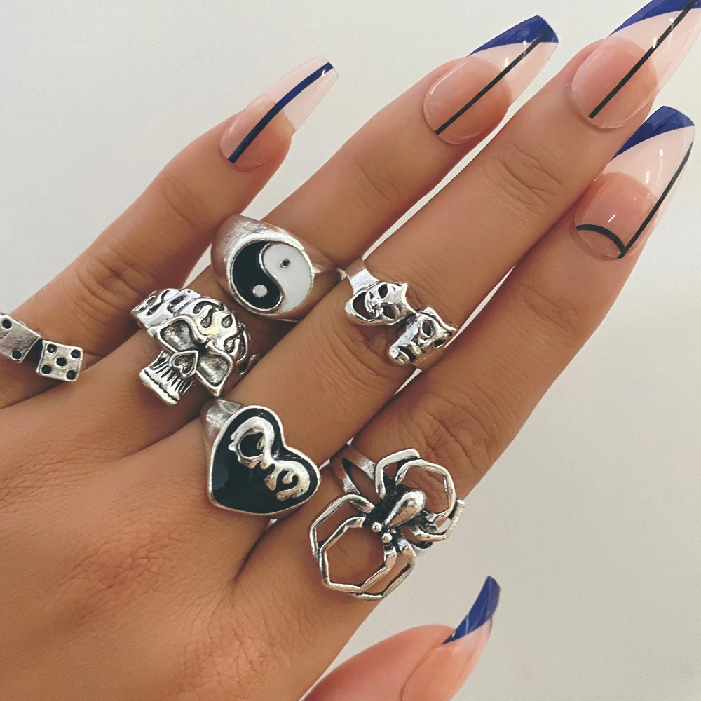 Винтажное посеребренное кольцо с крыльями ангела для женщин, готический панк, стимпанк, сердце, бабочка, кольцо с черепом, комплекты ювелирных изделий для вечеринки, 2021