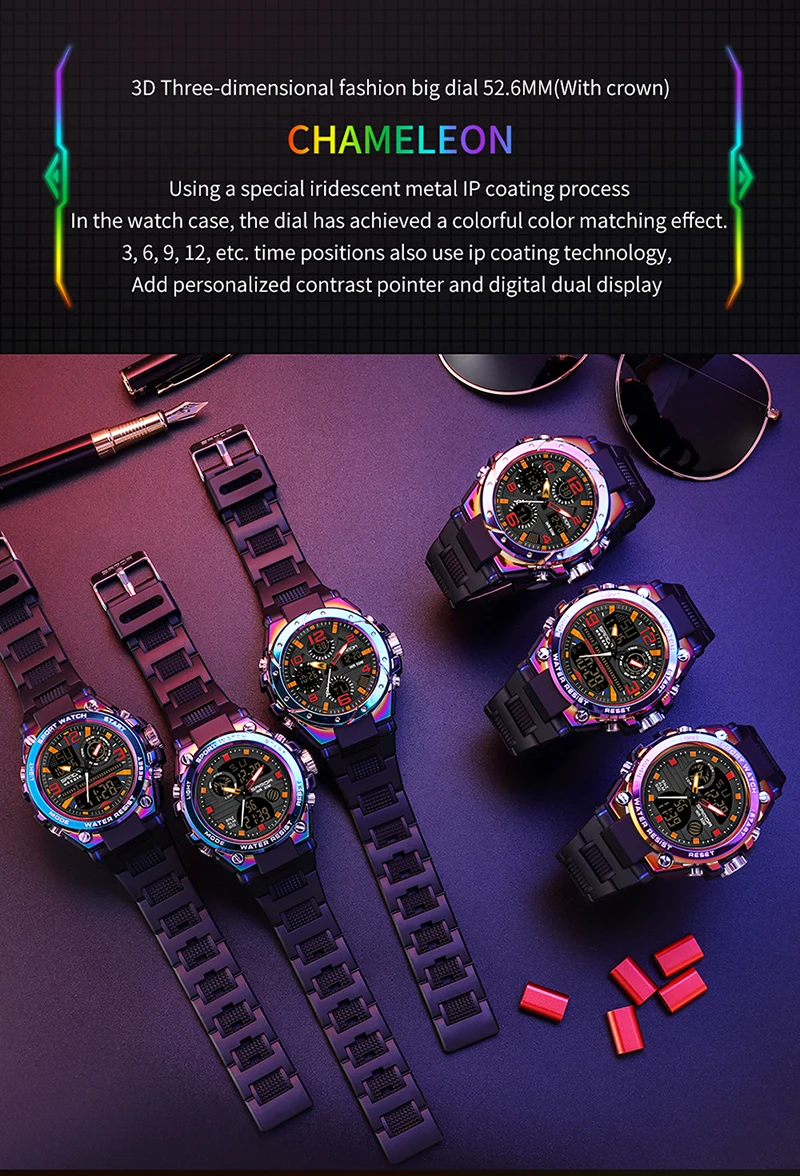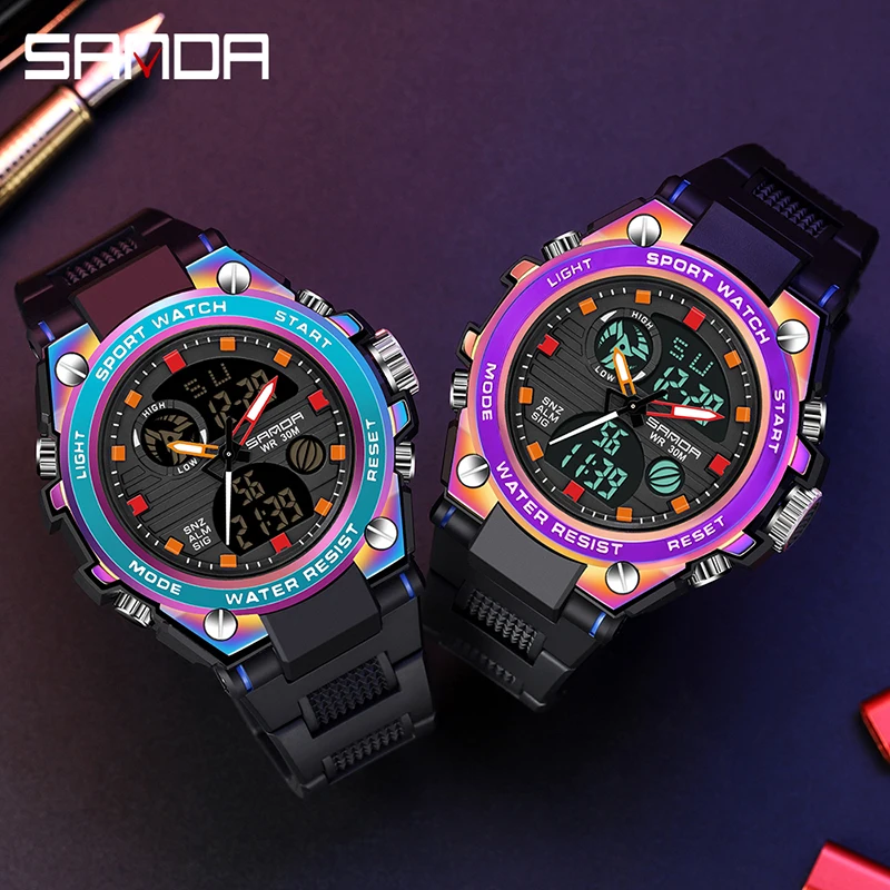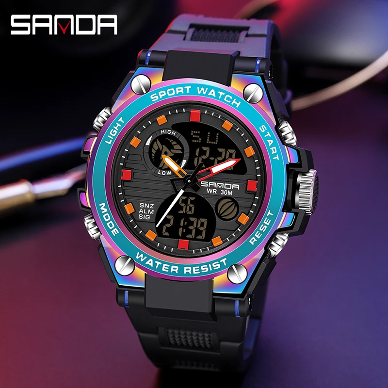 Мужские наручные часы SANDA, водонепроницаемые, с двойным дисплеем