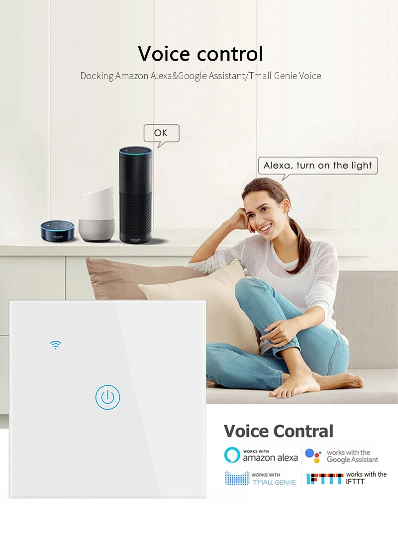 【Поддержка голосового контроллера 】 переключатель совместим с Alexa и Google Home Assistant, что позволяет использовать Голосовое управление smart switch для включения/выключения.