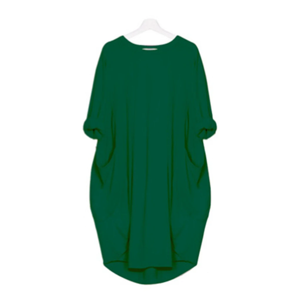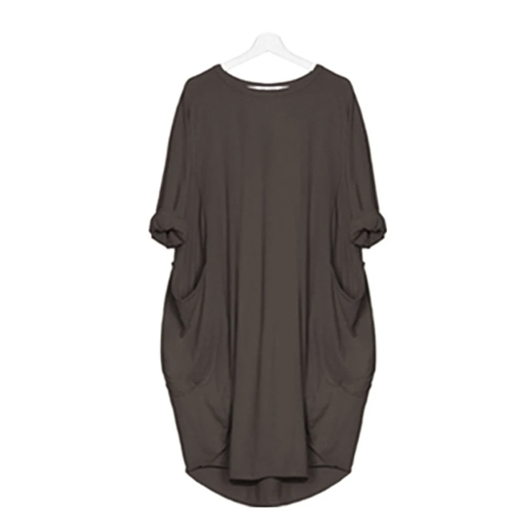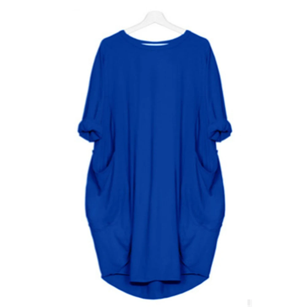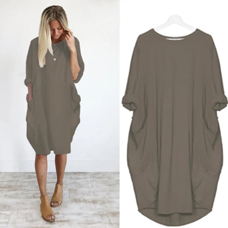 Осенние однотонные платья для женщин 2021 Весна свободного размера плюс 5XL с длинным рукавом Vestidos карманы повседневное Черное Платье До Колена