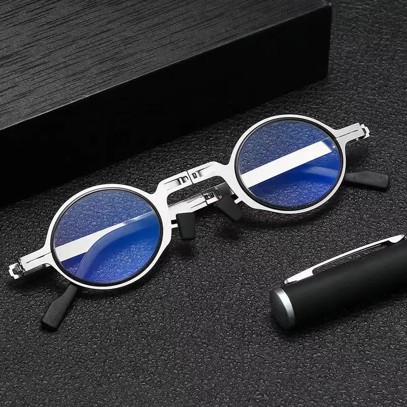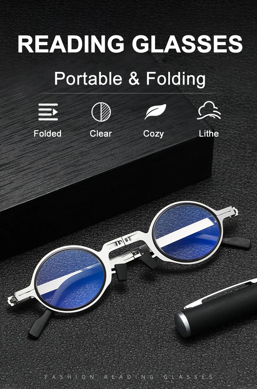 Новые круглые складные очки для чтения CLLOIO для мужчин и женщин, очки для дальнозоркости с защитой от сисветильник, портативные дизайнерские очки для чтения с чехлом