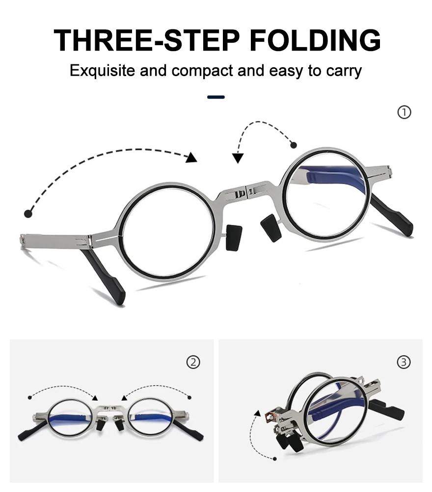 * Высокое качество, практичный дизайн-очки изготовлены из оправы из нержавеющей стали и поликарбонатных линз, а складная конструкция позволяет брать в любое место. Мягкие силиконовые носоупоры и гибкие заушники позволяют идеально подогнать различные лица. Вы будете удовлетворены нашим высоким качеством, если получите их!