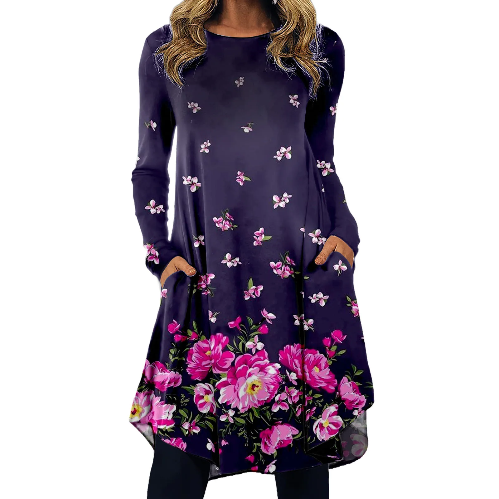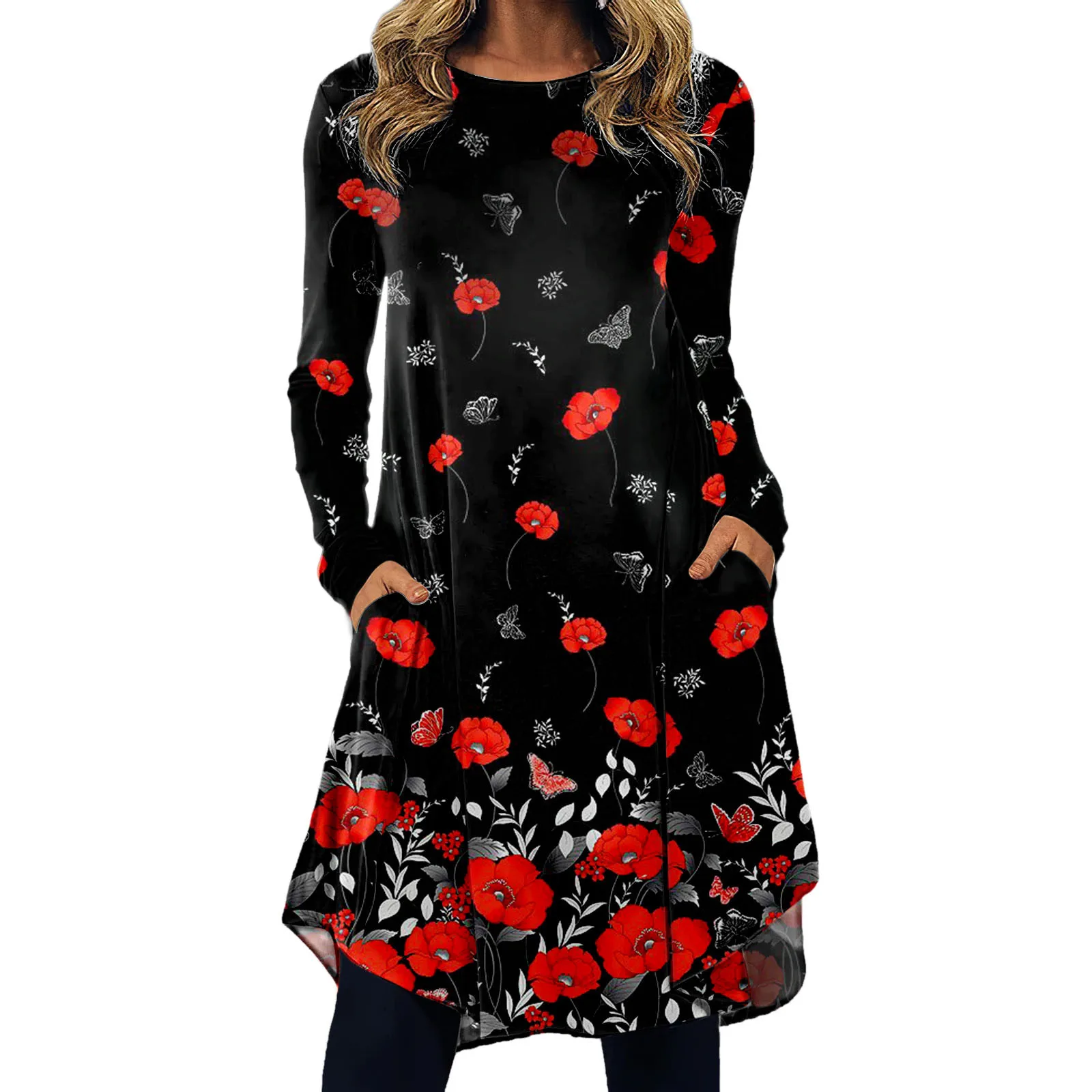 Женское винтажное платье с цветочным принтом, вечерние нным рукавом и круглым вырезом