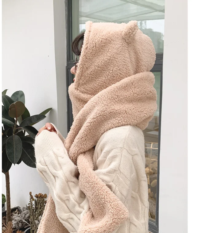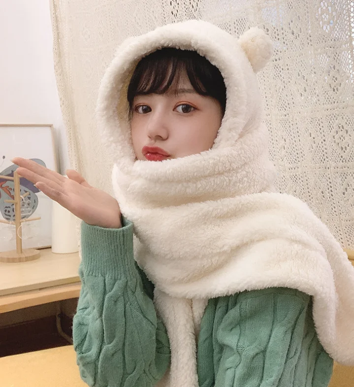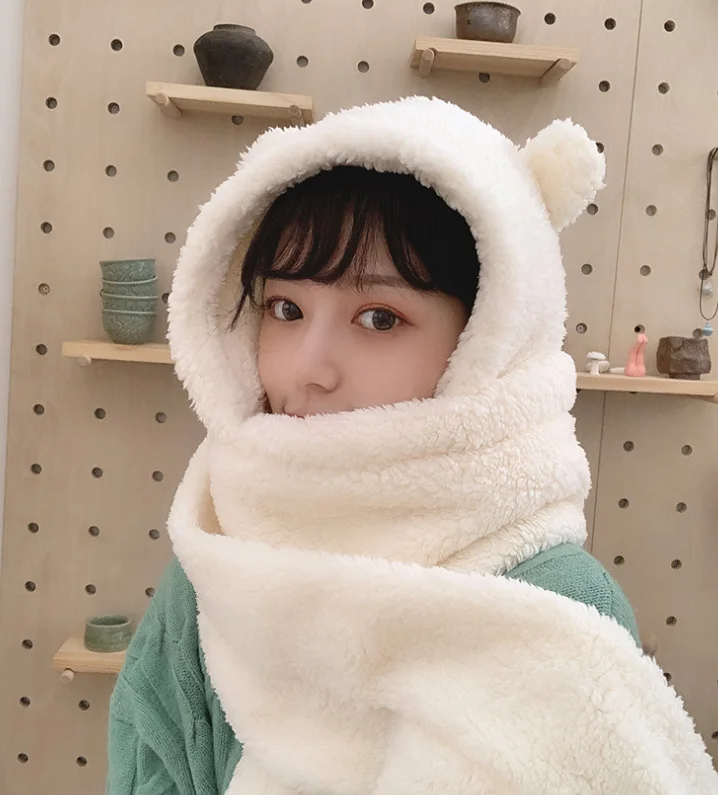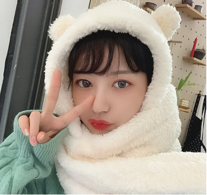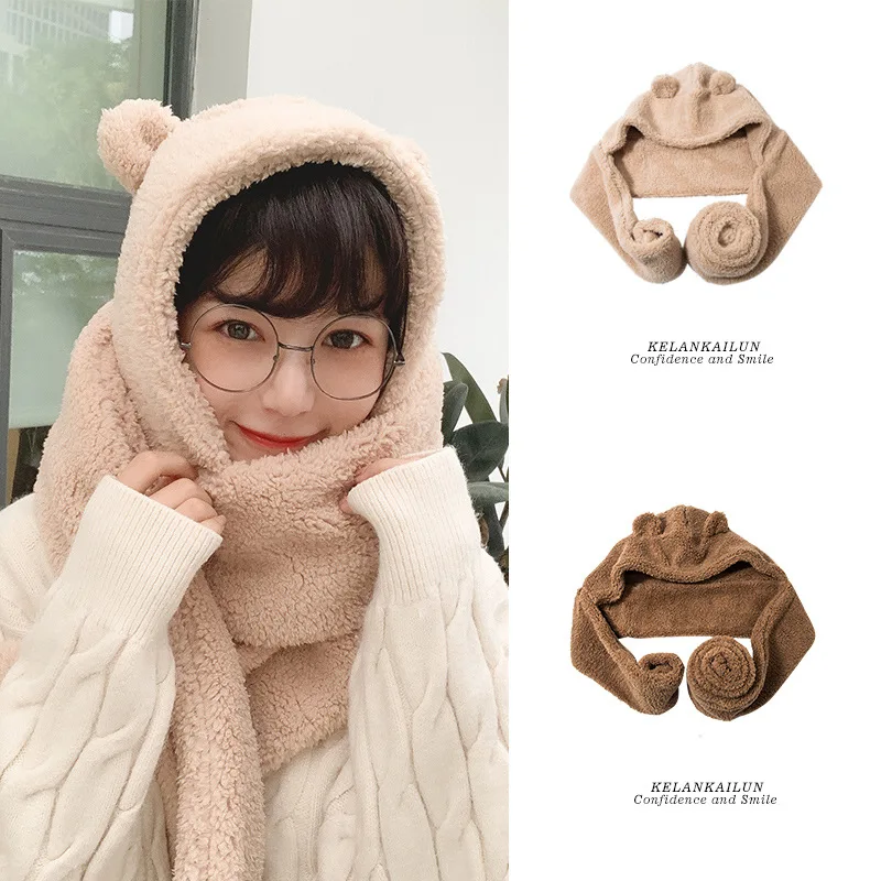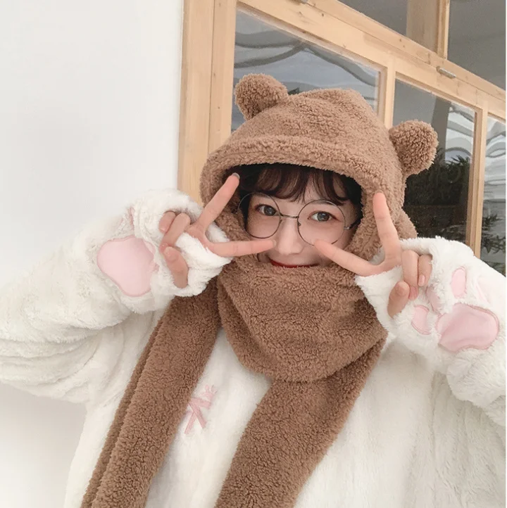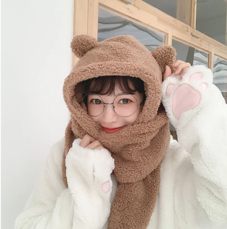 Медвежья шапка шарф все в одном Симпатичная зимняя двухслойная тепл...