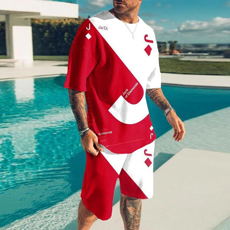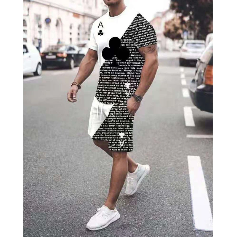 Мужской комплект из футболки и шортов, с круглым вырезом и коротким рукавом