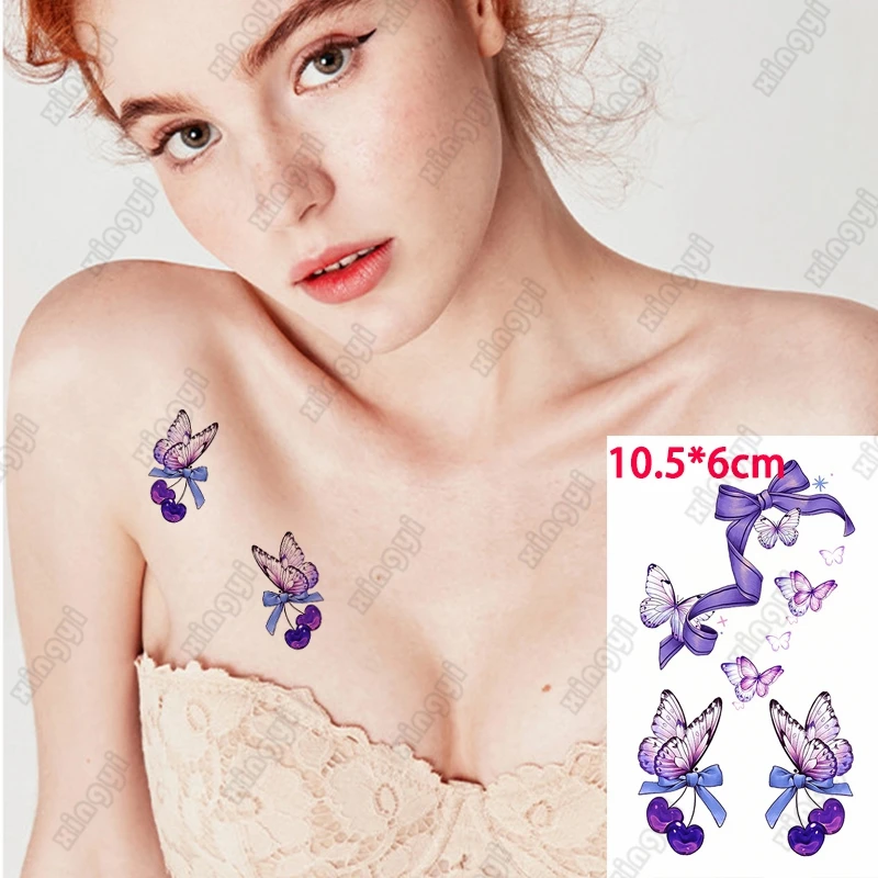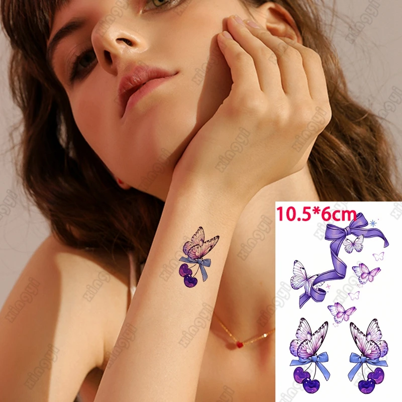 Водостойкая Временная тату-наклейка с фиолетовым бантом, цветная наклейка-бабочка, крыло, для детей, для рук, запястья, имитация татуировки, боди-арт для женщин и мужчин