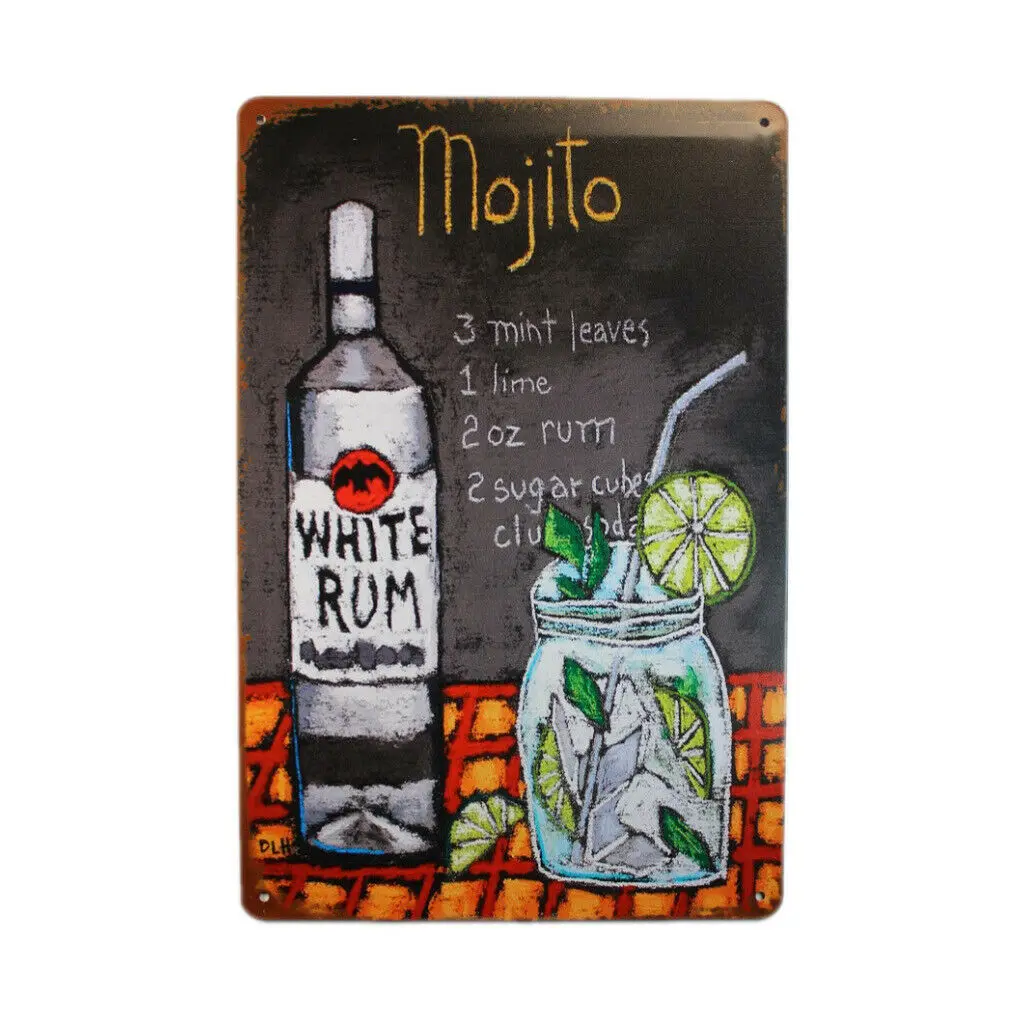 Mojito Оловянная железная живопись с белым ромом, Настенный декор, художественная настенная пластина, плакат, Настенная табличка