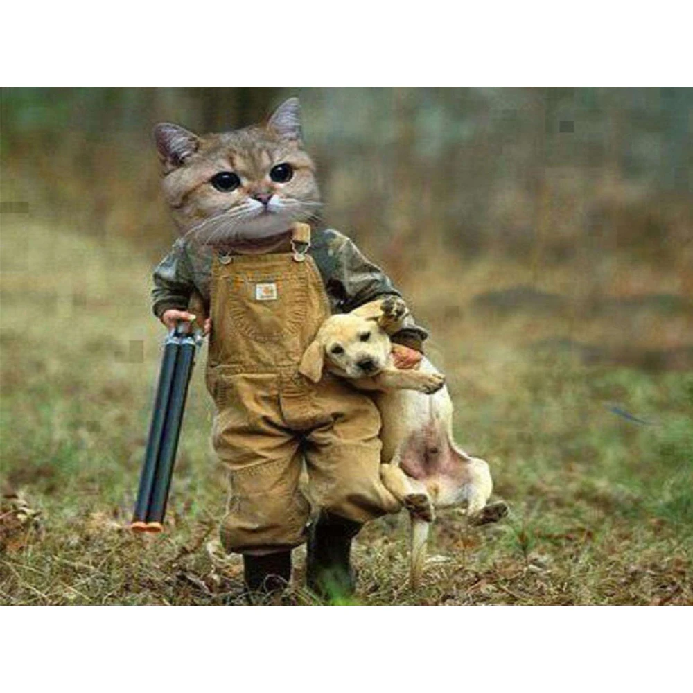 Алмазная 5D мозаика сделай сам, картина с рисунком кошки и собаки, ...
