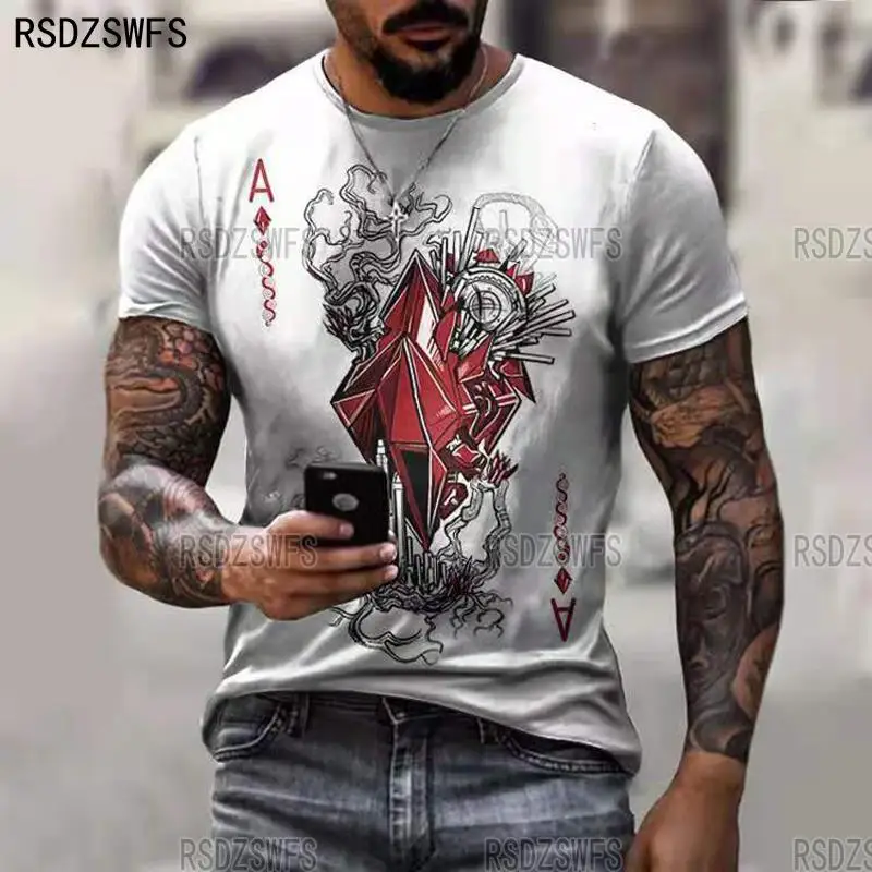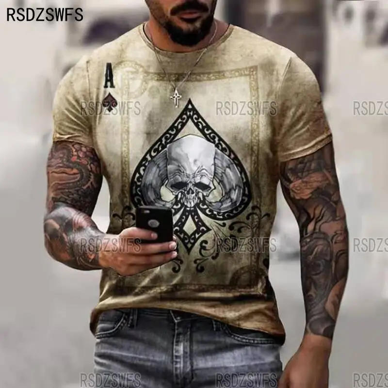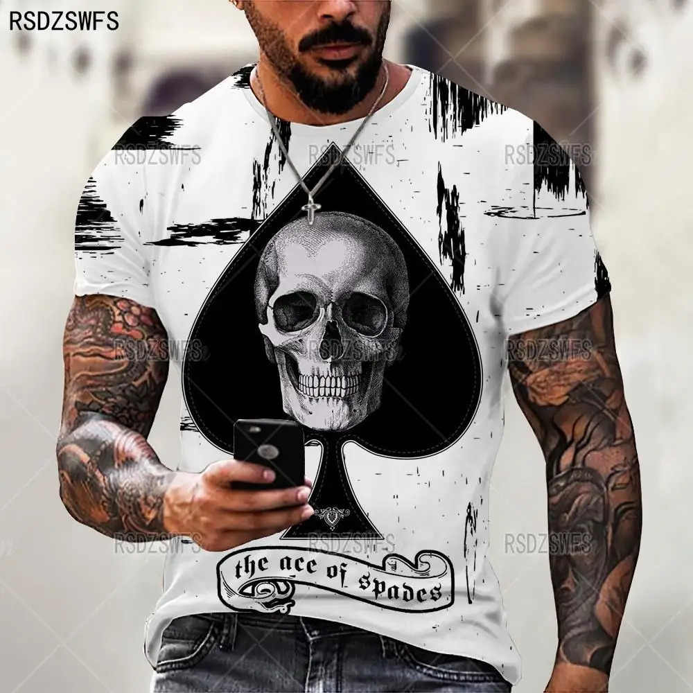 Ужасная Мужская футболка с принтом черепа пик покер Повседневная летняя Мужская очень большая футболка 2021 комфортная дышащая футболка Топы 110-5XL