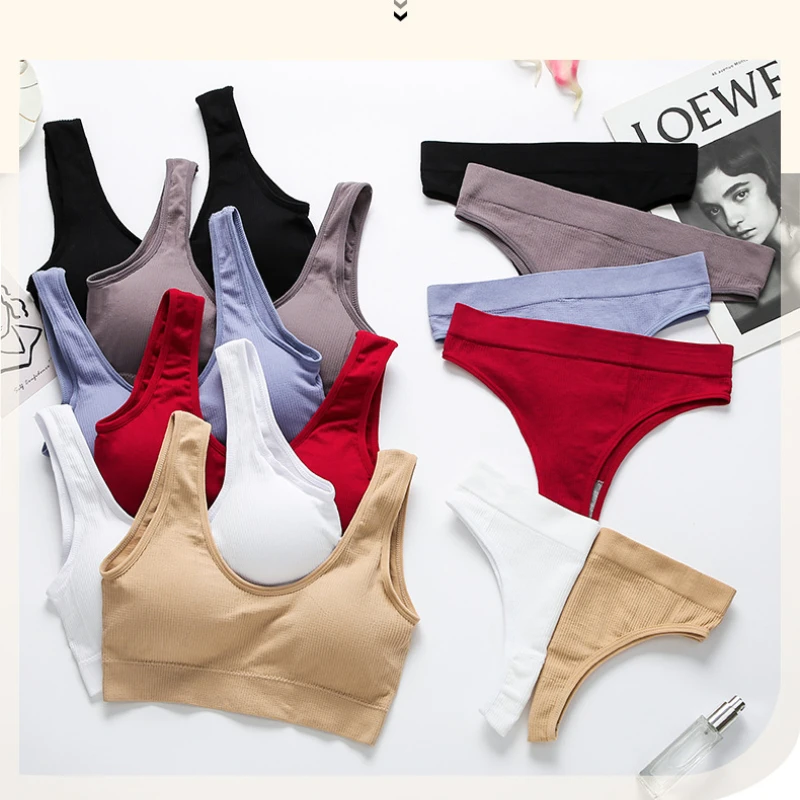 Комплекты нижнего белья, Женский Комплект бюстгальтеров, сексуальный бюстгальтер без косточек, женское нижнее белье, топы в рубчик, бесшовный бюстгальтер без косточек и сексуальные трусики