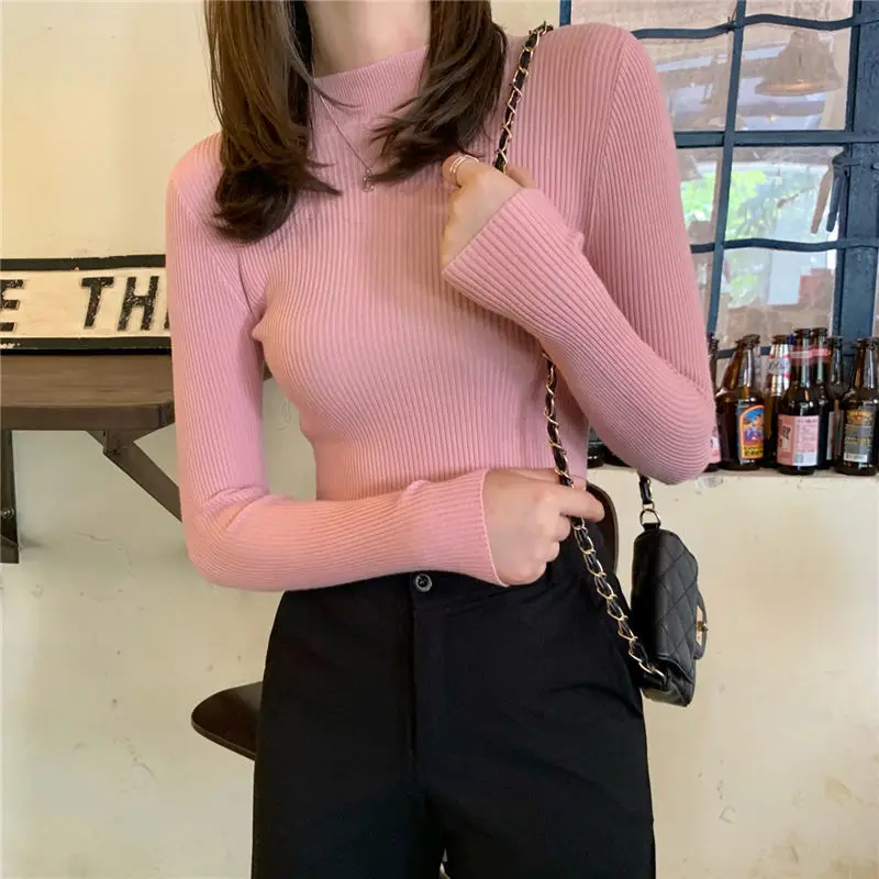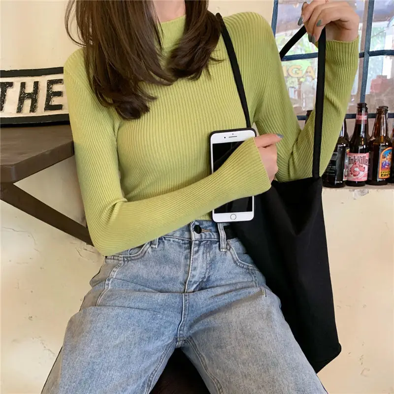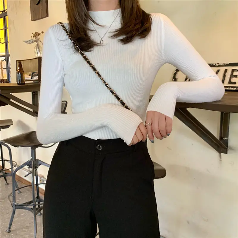Базовый облегающий свитер с высоким воротником, пуловер, женский осенне-зимний Повседневный вязаный свитер с длинным рукавом, женские джемперы, Топ