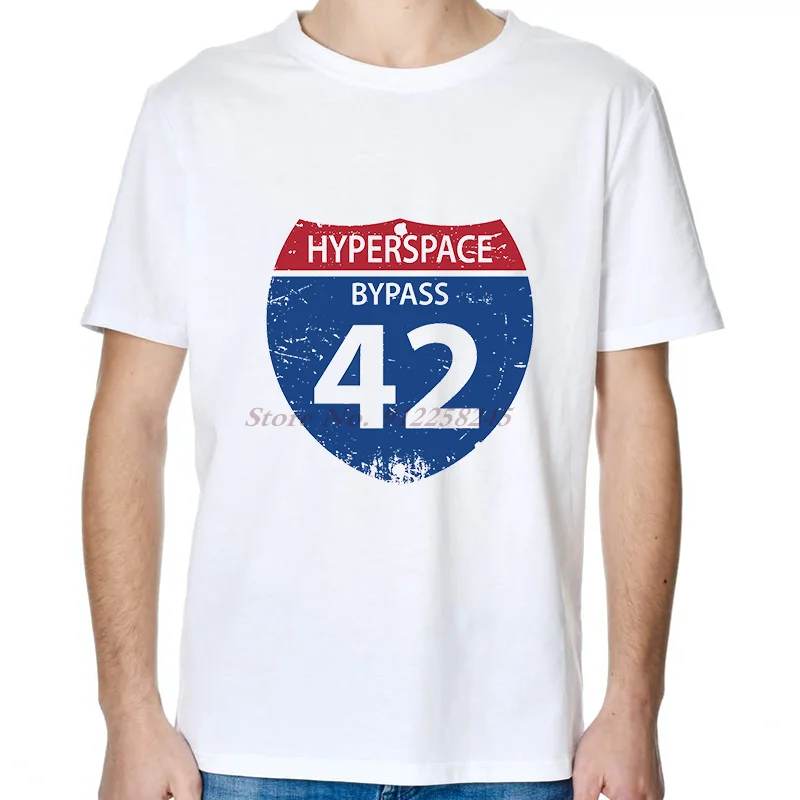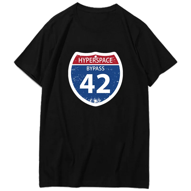 Футболка унисекс с коротким рукавом, черно-белая футболка Hitchhikers Guide To The Galaxy Bypass 42 Hyperspace Дуглас Adams