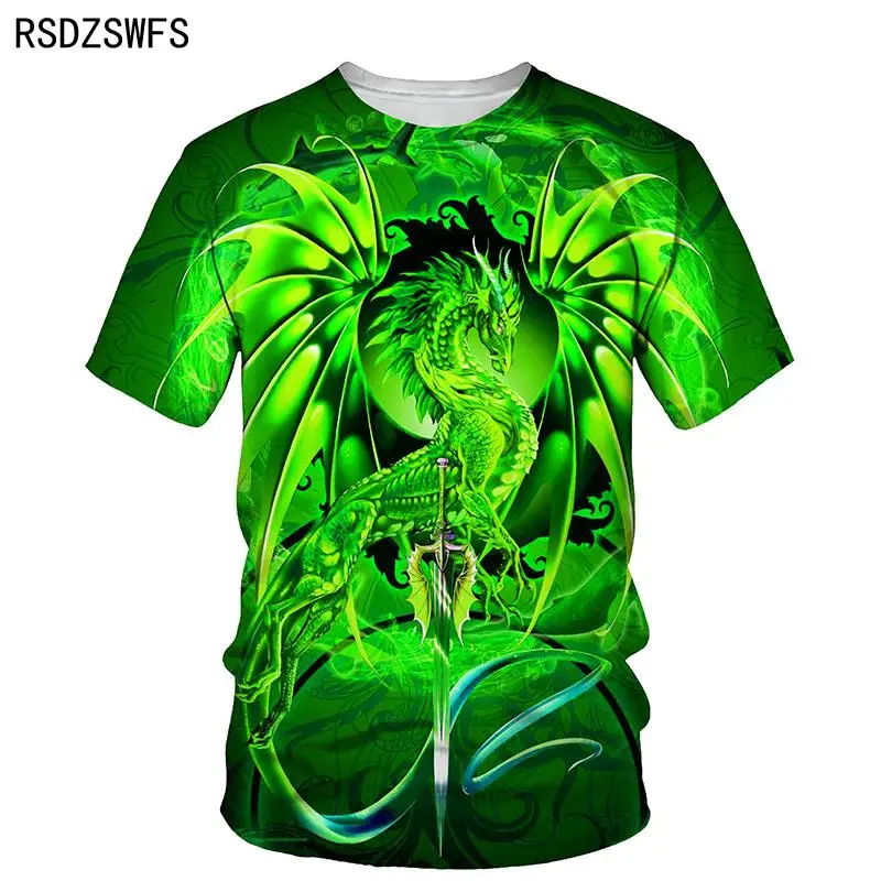 Футболка мужская с круглым вырезом, короткий рукав, 3d-принт, Повседневная модная рубашка, топ в западном стиле дракона, лето 2021