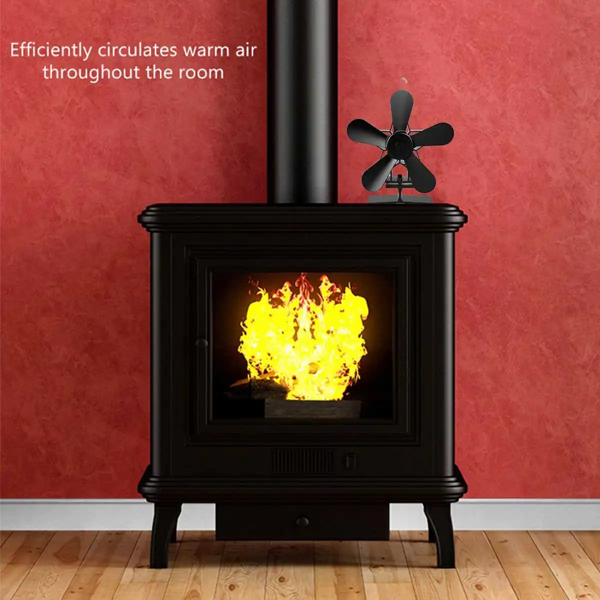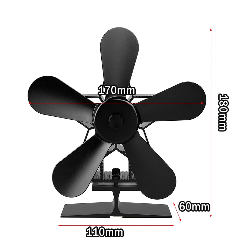 Черный вентилятор для камина 5 лезвий вентилятор для печи, работающ...