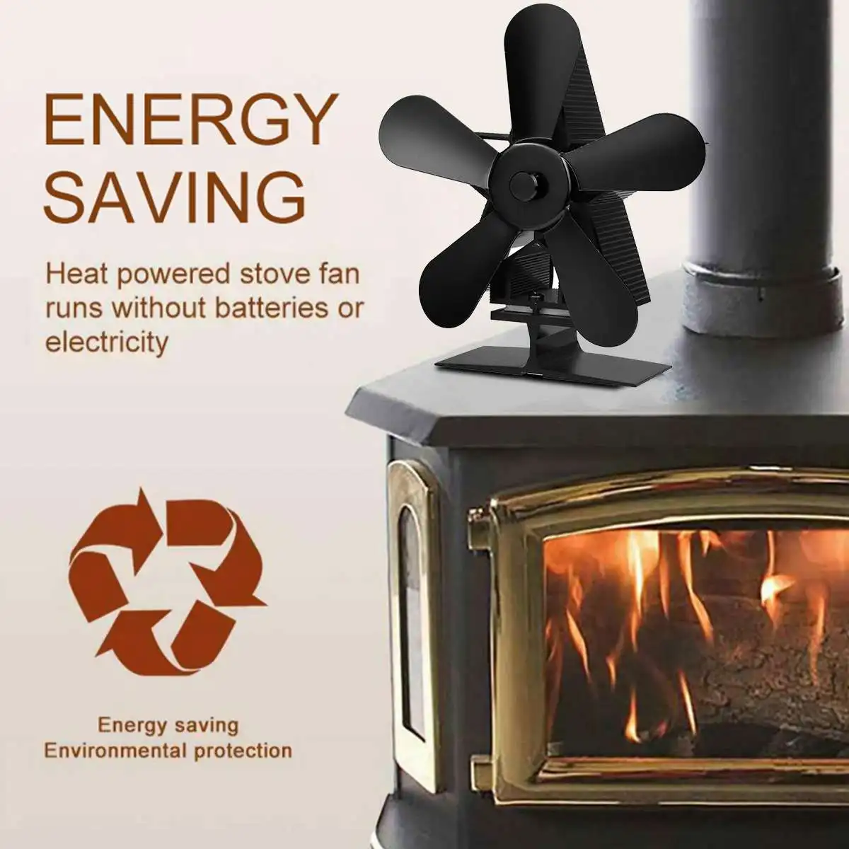 Зимние 5 лезвий вентилятор для камина плита вентилятор Экологичные ...