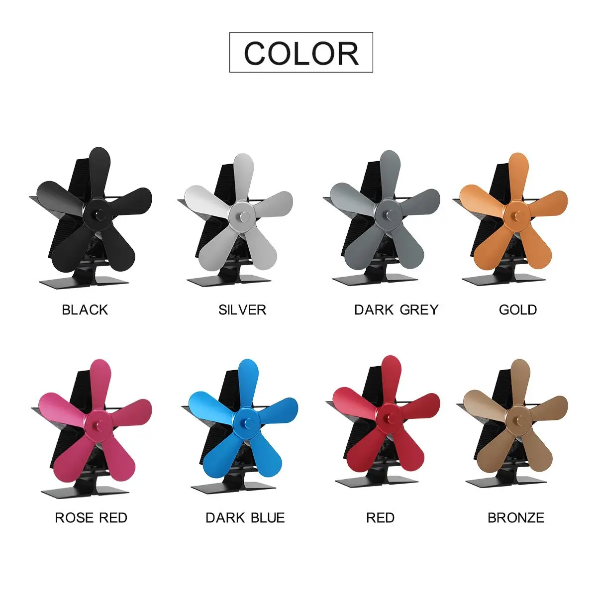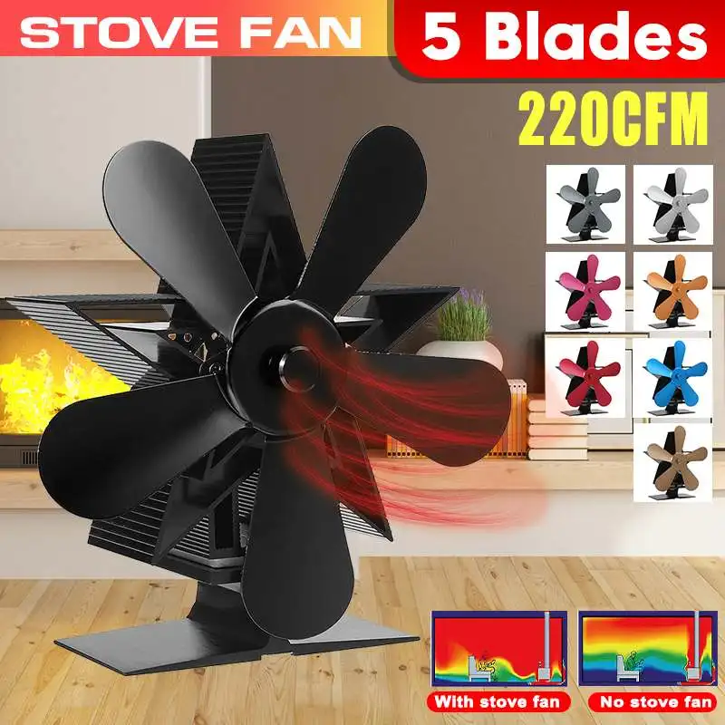 5 лопастей, многоцветный бесшумный вентилятор для плиты, электрический вентилятор с питанием от тепла, деревянная горелка для дома, эффективное распределение тепла