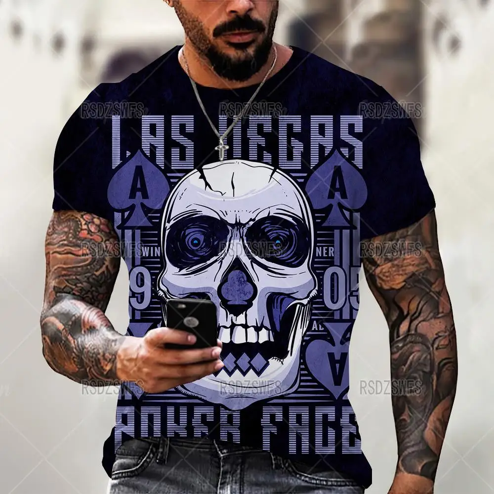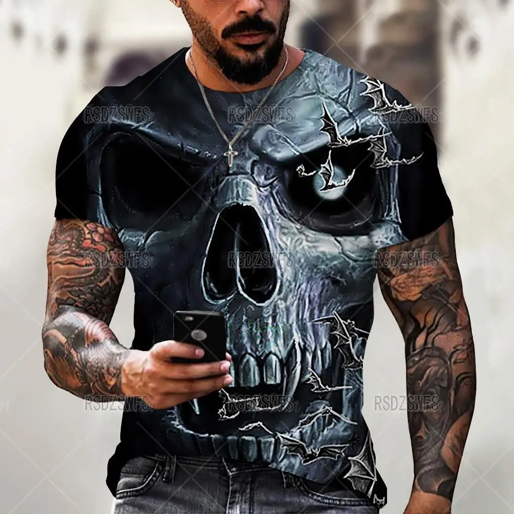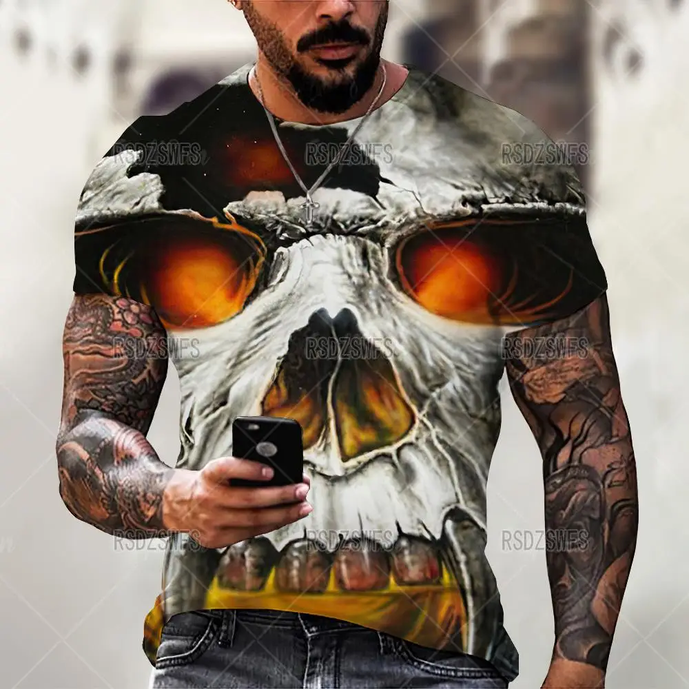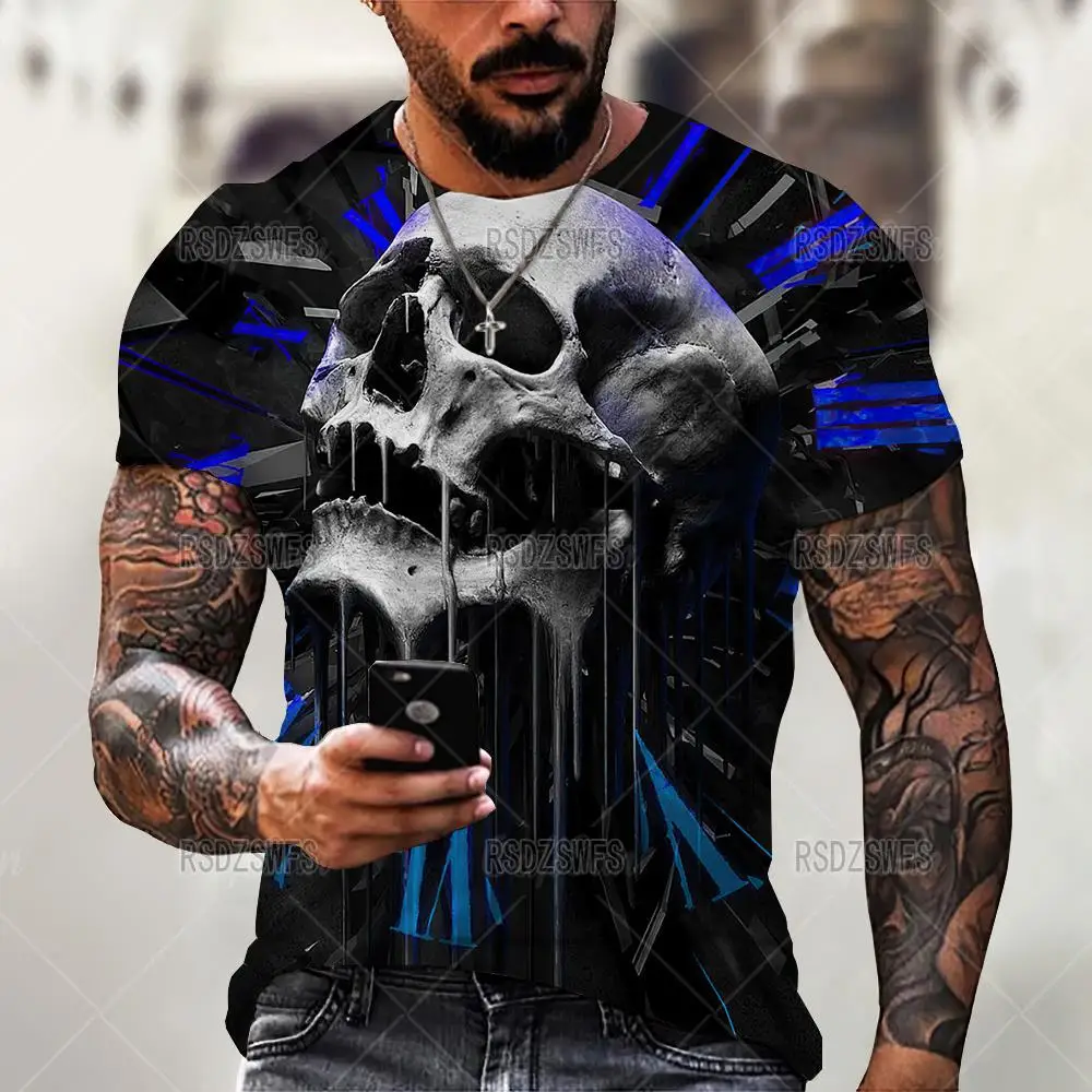 Футболка мужская с 3D-принтом черепа, повседневная тенниска оверсайз с коротким рукавом, уличная одежда, топы в стиле хип-хоп, одежда, 5XL, лето