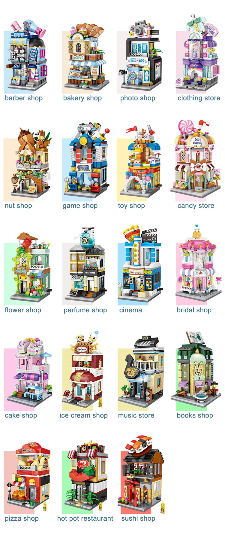 LOZ 1621-1652 строительные блоки Mini Street View City, сборка сделай сам, развивающие блоки, 3d-архитектура, магазин моделей, подарок для детей