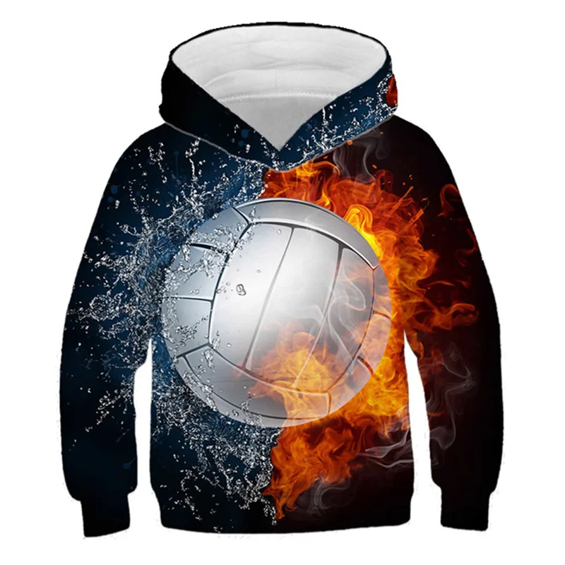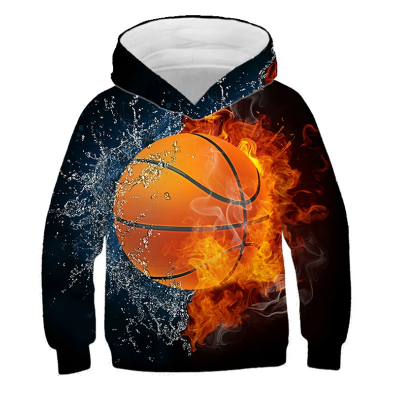 Детская толстовка с капюшоном и принтом пламени, на Возраст 4-14 лет