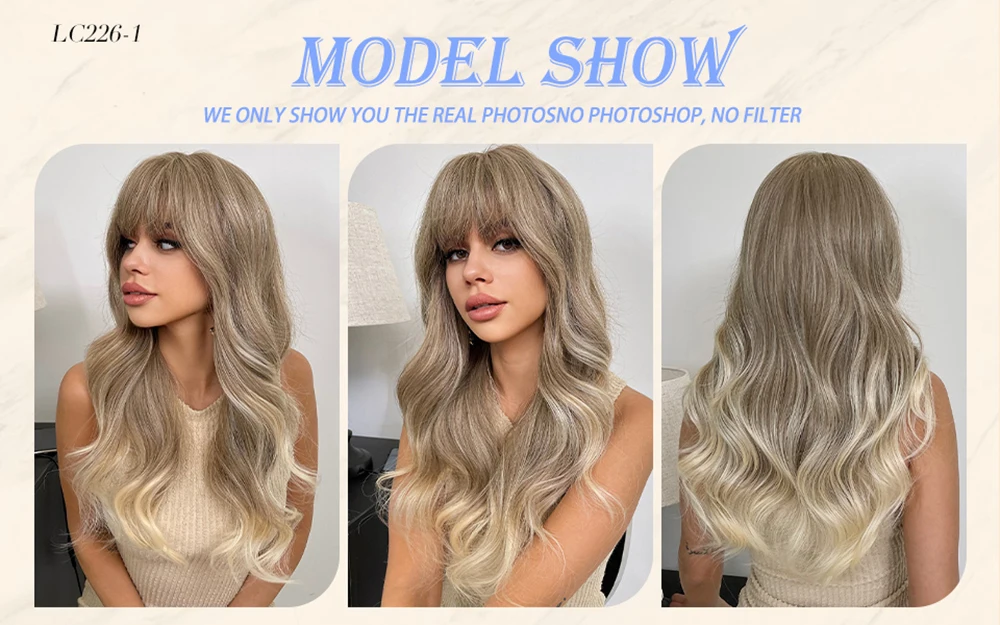 Длинные пушистые Волнистые светлые парики LOUIS FERRE с челкой Косп...
