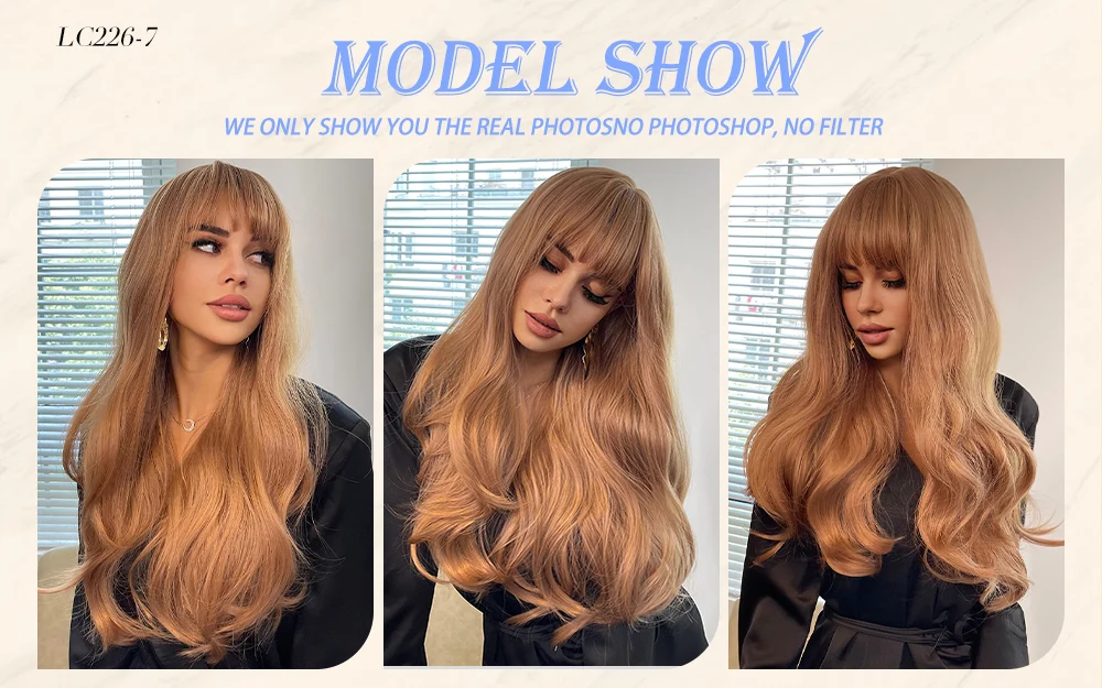 Парики с челкой для женщин, Длинные Синтетические волосы с волнами,...