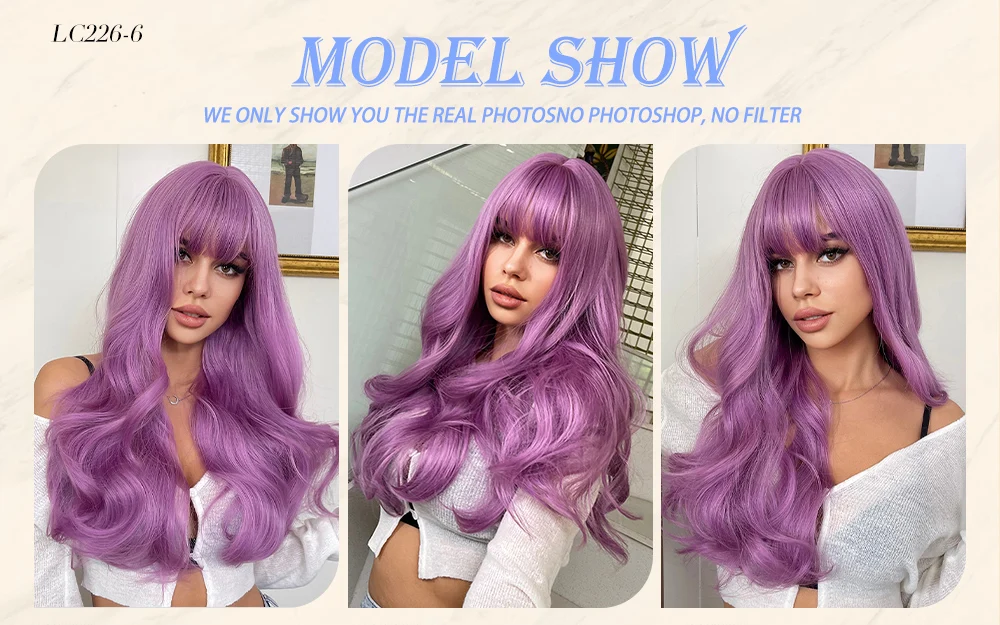 Парики для косплея, длинные, фиолетовые, смешанные, с челкой